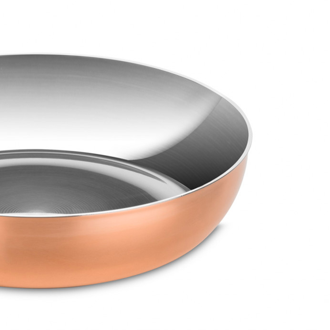 MATERIALS: Outer layer in copper (material with highest conductivity after silver), aluminum (lightweight, non-corrosive and non-toxic), inner layer in 18/10 stainless steel (the most hygienic and easiest to clean material).
