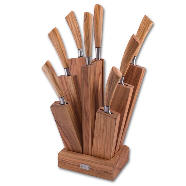 Toscano Knife Block by Saladini in solid olive wood is made and forged entirely by hand in Italy and has an original design typical of Saladini's creations.