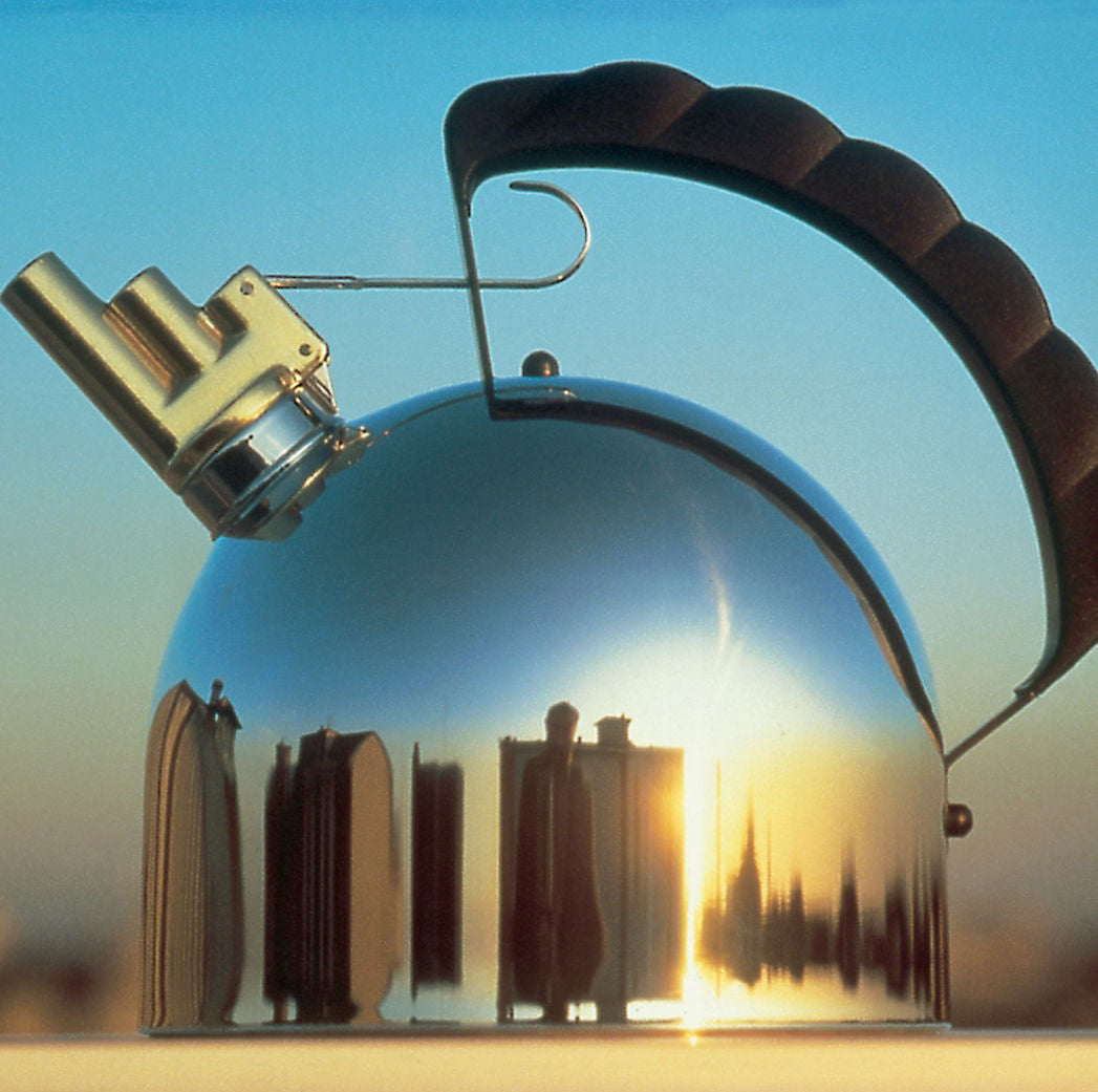 The 9091 was Alessi's first designer kettle, ushering in a long and successful tradition. The central element in the design is the brass whistle which, when the steam exits, produces a short and pleasant melody. Richard Sapper wanted to avoid the usual anxiety-generating noise produced by other kettles then on the market, and by following this exquisitely poetic philosophy he produced what is probably the first multisensory object for the kitchen.