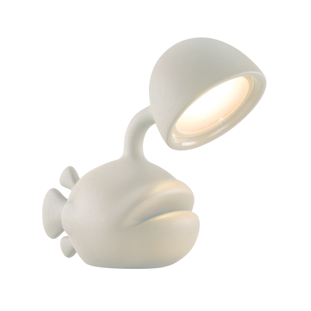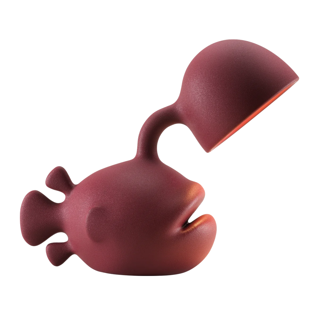 Designed by Dai Sugasawa, Abyss is a bold fish-shaped table lamp in recyclable polyethylene. Inspired by the anglerfish swimming in the deep seas with its luminous built-in rod, Abyss will dock directly to your house bringing light on your dining or bedside table. Available in different colors.