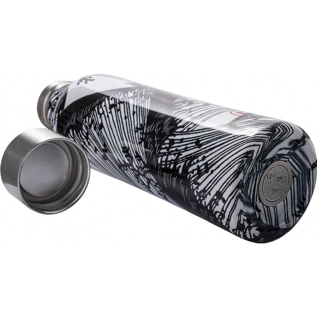 Made of 18/10 stainless steel, the bottle is vacuum-sealed insulated with a special copper coating between the two steel walls at the desired temperature for long periods with no outer condensation. The  brushed lid is double-walled too, for even better insulation.