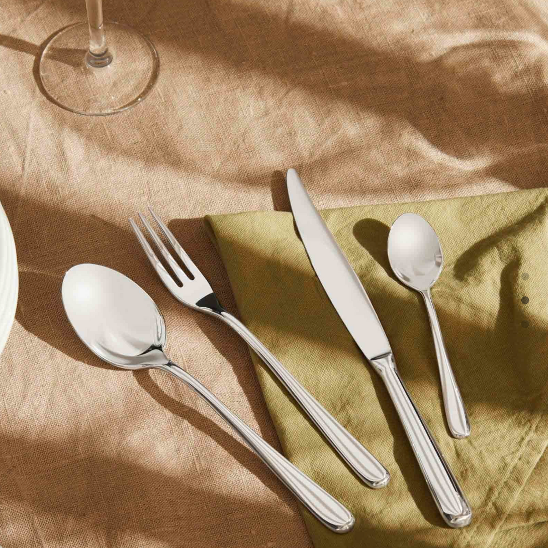 Caccia cutlery is an excellent example of Lombard classicism in design - won praise from Gio Ponti for the balance it struck between an image of craftsmanship and the industrial future of household objects. Since 1990, thanks to an agreement with the Castiglioni brothers and with Luigi Caccia Dominioni and after extensive philological research to complete the series with the missing pieces, Caccia has been reissued by Alessi in 18/10 stainless steel and in 925/00 silver for the Officina Alessi brand.