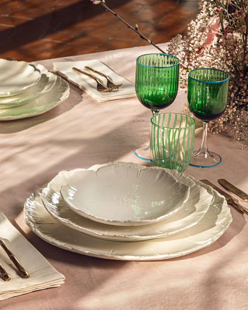 Memorable meals start with pieces from Aquazzura Casa's Cherry Blossom Collection. Italian-made by expert artisans, the organic shape is inspired by the unique characteristics of the striking flower. The sunken form is finished with a softer edge and glossy finish. The unique piece in delicate light pearl is suitable for everyday dining or elegant evenings. Be sure to style with other pieces from the refined collection.