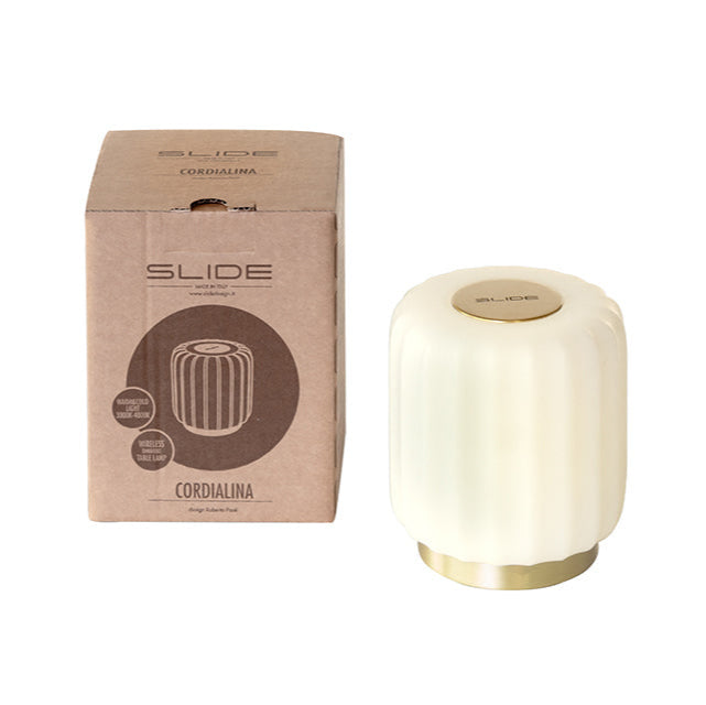 Cordialina is the table lamp with rechargeable battery that recalls the Art Deco style. The elegant design, embellished with brass elements, and the homogeneous light make Cordialina ideal to create a discreet and welcoming table centrepiece.
