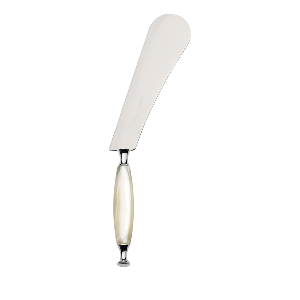 Country coloured cutlery set features a softly rounded, mother-of-pearl effect acrylic handle and a polished steel tapered ring. An essential accessory to bring charm and personality to your table.