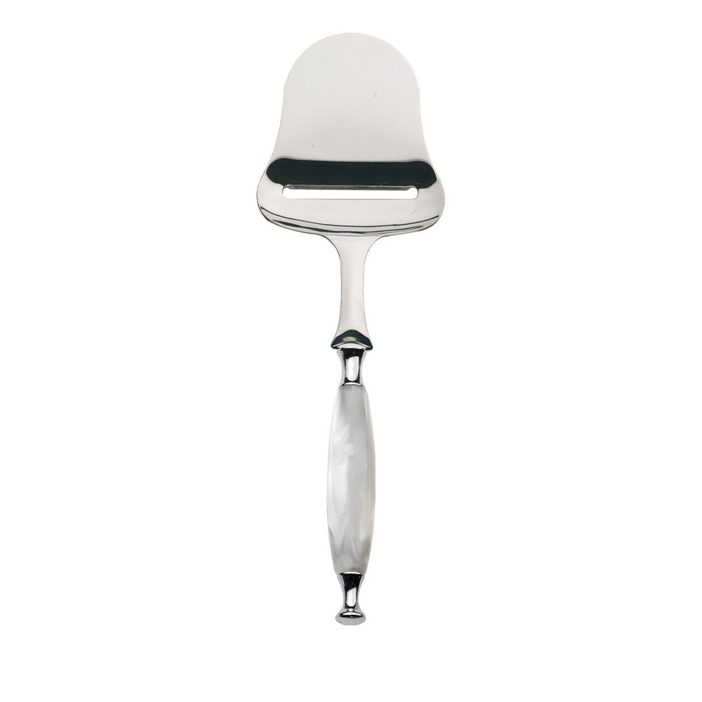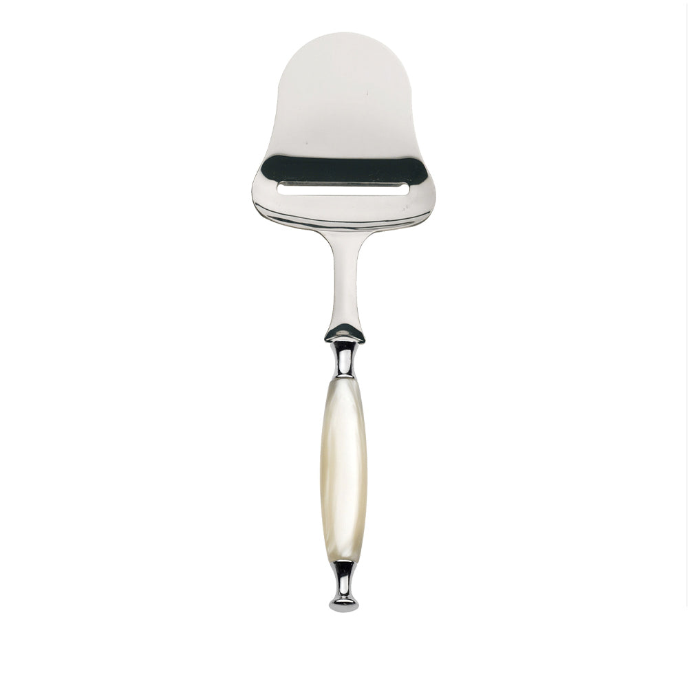 Country coloured cutlery set features a softly rounded, mother-of-pearl effect acrylic handle and a polished steel tapered ring. An essential accessory to bring charm and personality to your table.