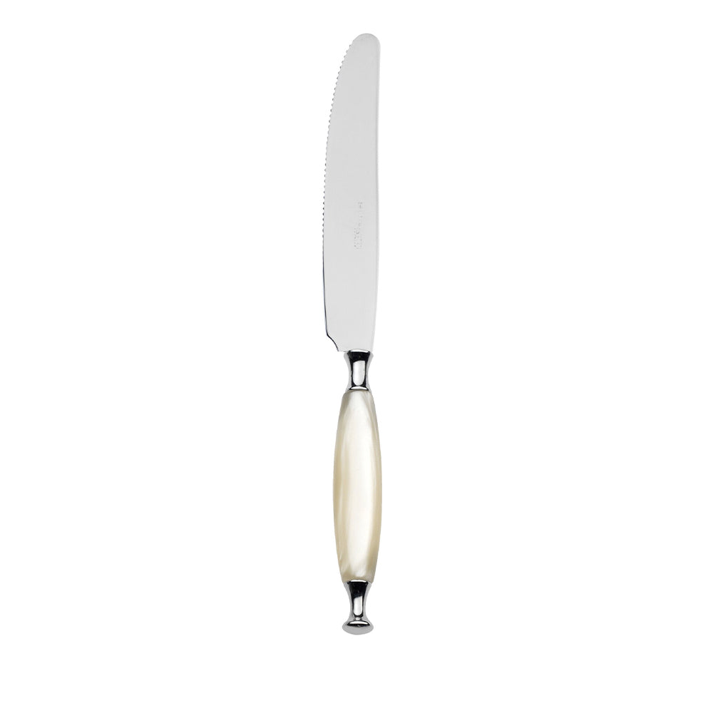 Country coloured cutlery set features a softly rounded, mother-of-pearl effect acrylic handle and a polished steel tapered ring. An essential accessory to bring charm and personality to your table.