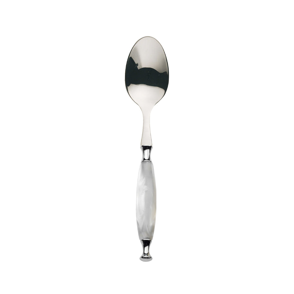 Country coloured cutlery set features a softly rounded, mother-of-pearl effect acrylic handle and a polished steel tapered ring. An essential accessory to bring charm and personality to your table.