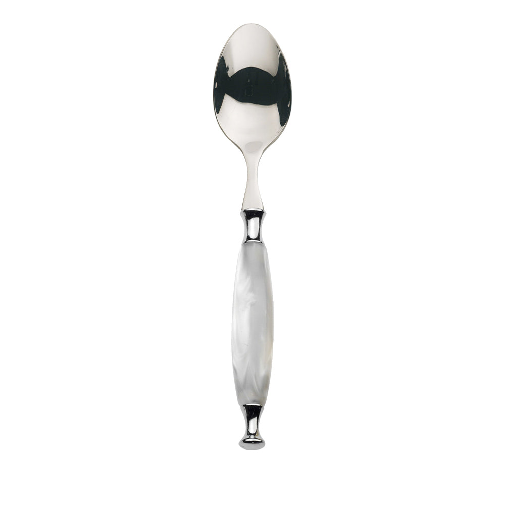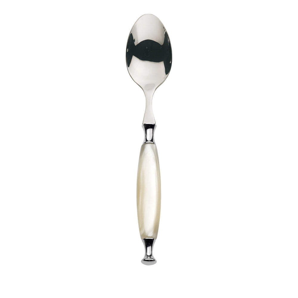 Country coloured cutlery set features a softly rounded, mother-of-pearl effect acrylic handle and a polished steel tapered ring. An essential accessory to bring charm and personality to your table.