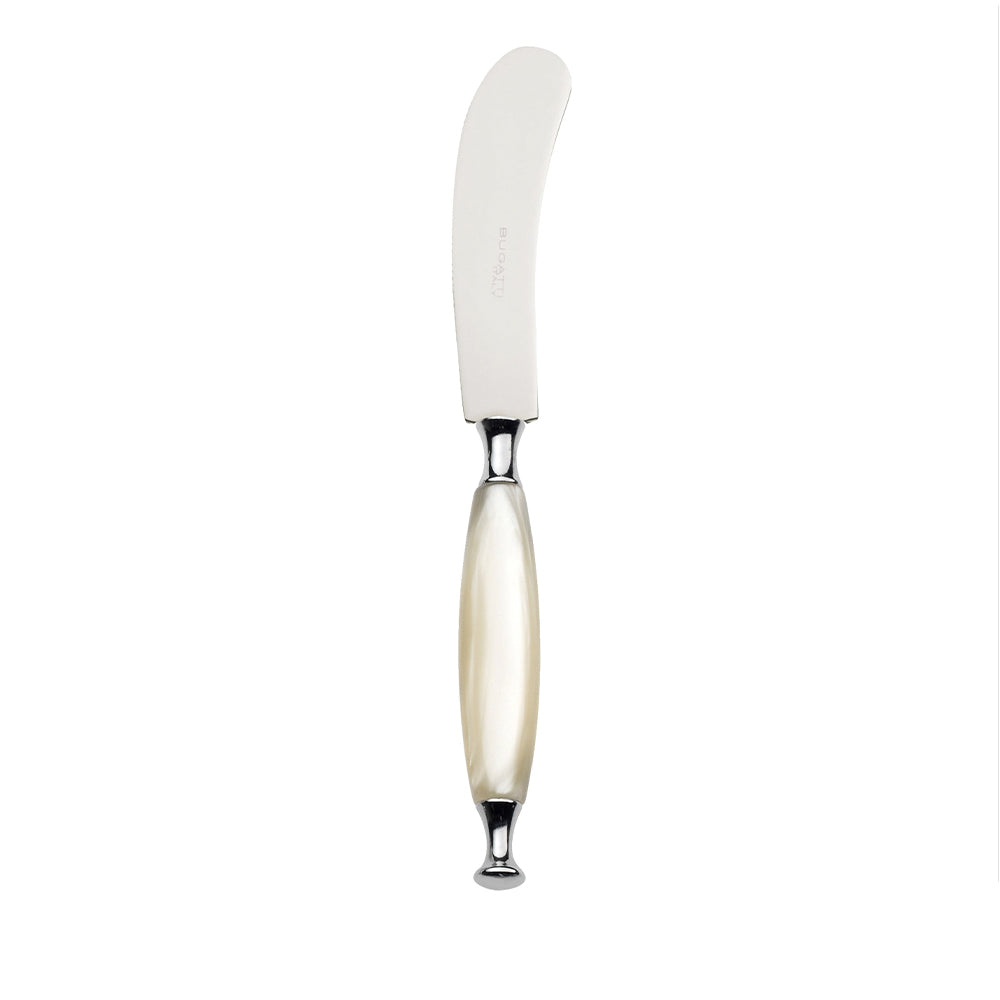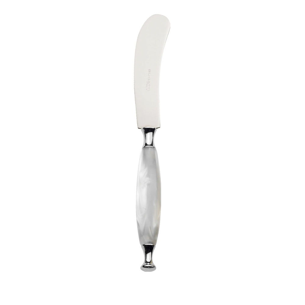 Country coloured cutlery set features a softly rounded, mother-of-pearl effect acrylic handle and a polished steel tapered ring. An essential accessory to bring charm and personality to your table.