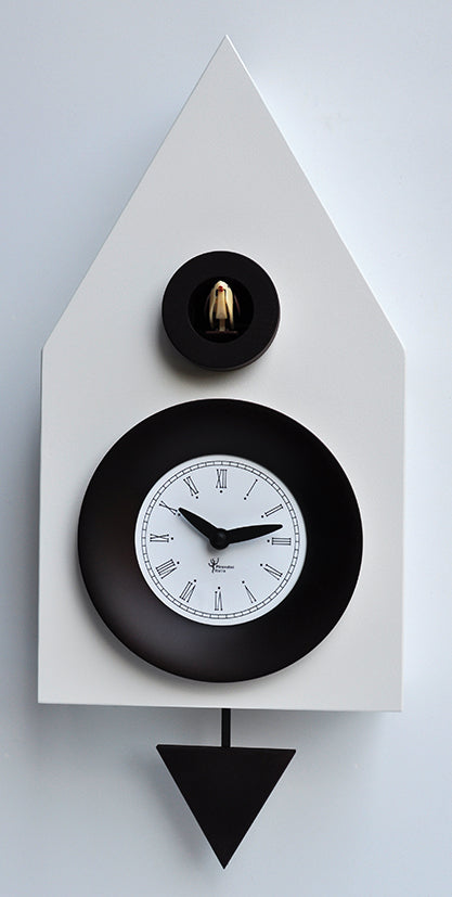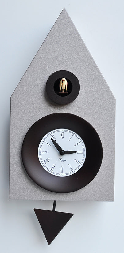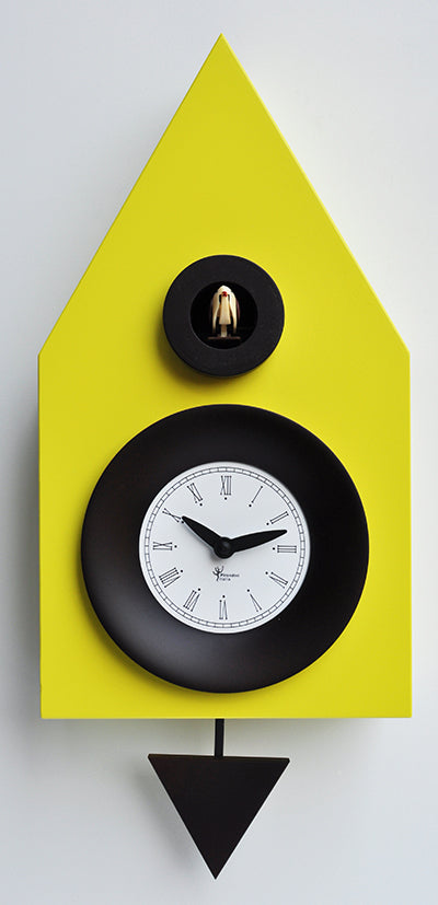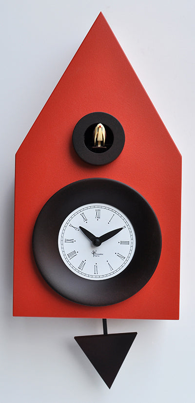 Cucu' Dark Wall Cuckoo Clock by Pirondini Italia. Modern and square lines for this cuckoo clock in lacquered MDF with details in solid beechwood. The vibrant colours of the clock together with its contemporary design will revive any wall in your home.