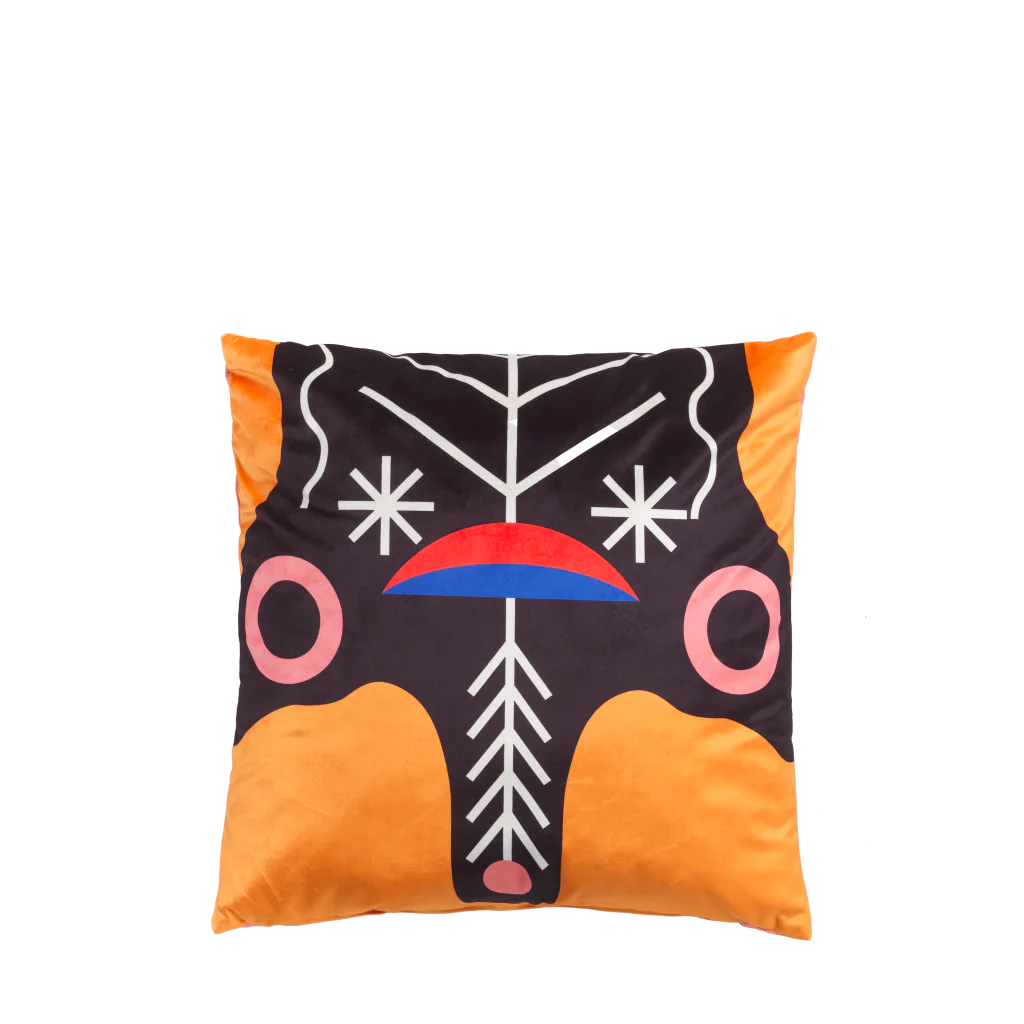 Discover Cushion Oggian Kinotto. The recurring monsters, creatures and geometerical shapes present in Marco Oggian’s graphics can be found also in these new 45x45 cushions. Eye-catching and entertaining they will add a splash of colour to your living rooms or bedrooms.