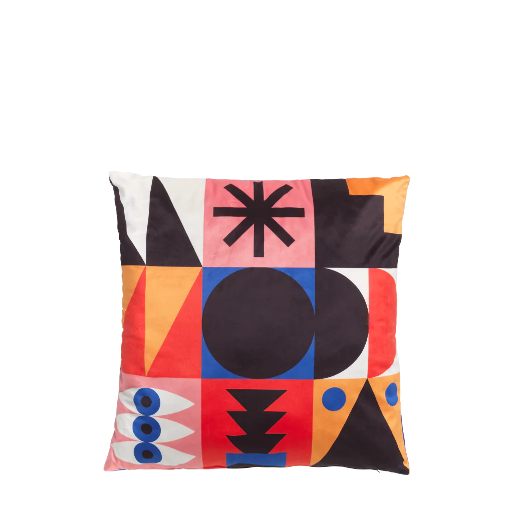 Discover Cushion Oggian Red Palm. The recurring monsters, creatures and geometerical shapes present in Marco Oggian’s graphics can be found also in these new 45x45 cushions. Eye-catching and entertaining they will add a splash of colour to your living rooms or bedrooms.