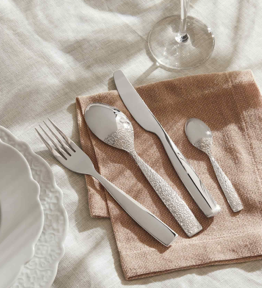 MATERIALS: 18/10 stainless steel mirror polished with relief decoration.