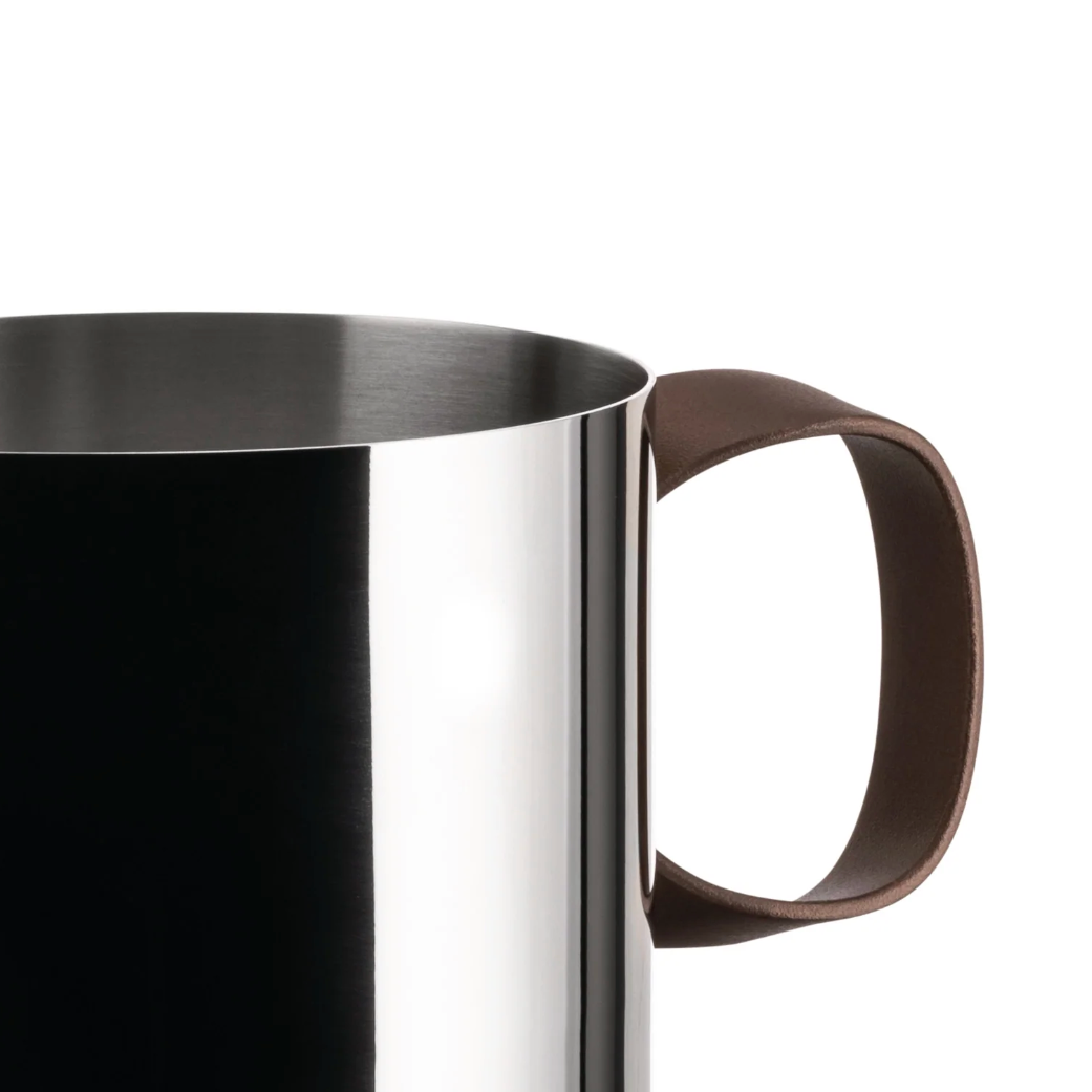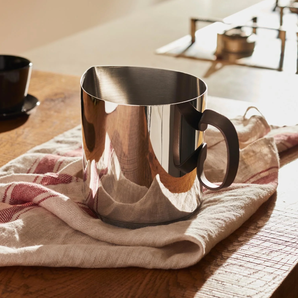 MATERIALS: Milk boiler in 18/10 stainless steel. Handle in 18/10 stainless steel with PVD coating, brown. Magnetic steel bottom suitable for induction cooking.