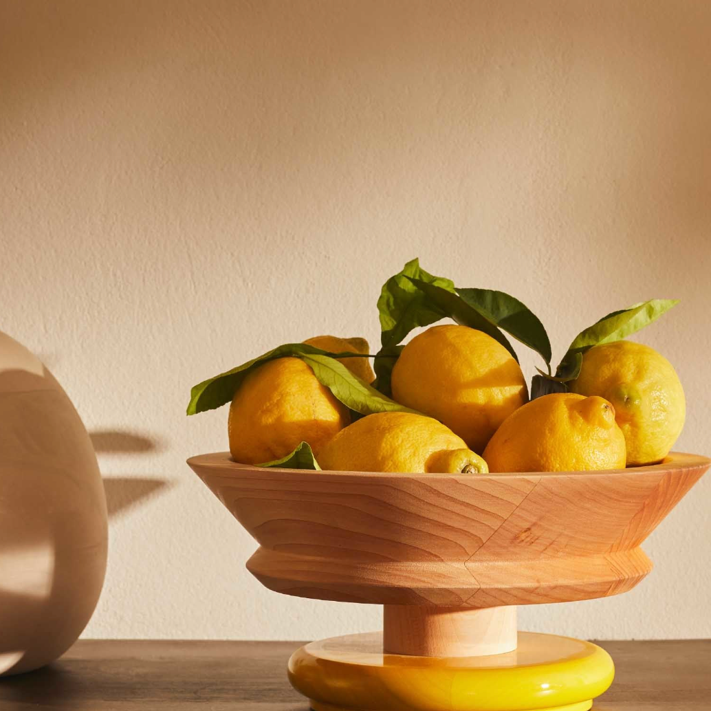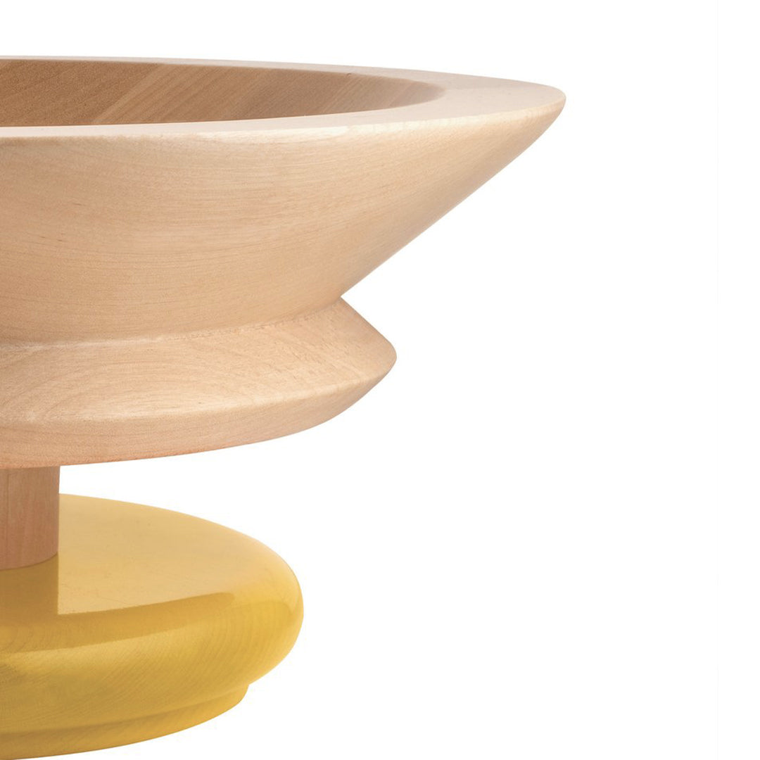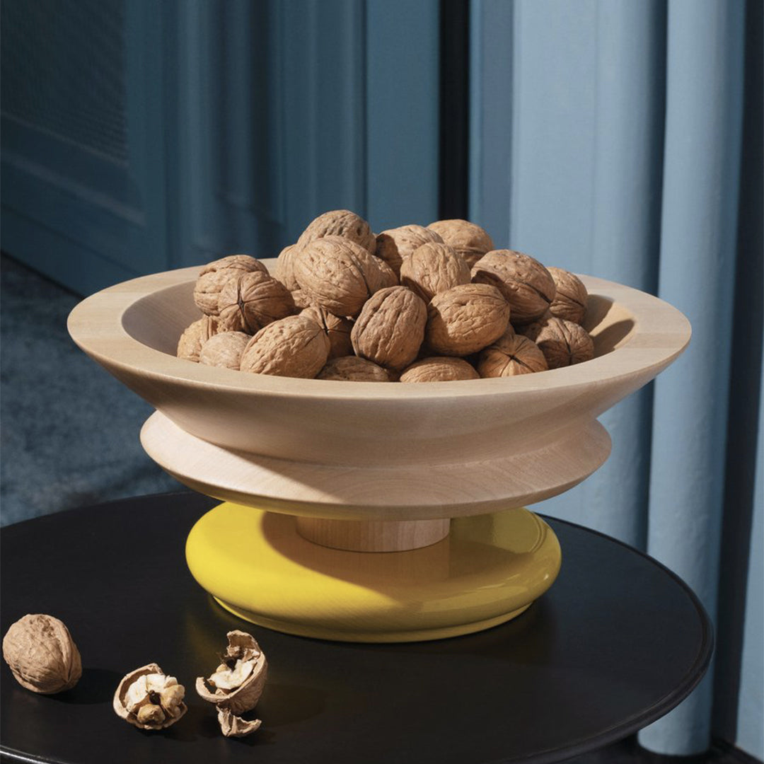 With its incisive and powerful design, this centerpiece produced in lime wood is one of the most significant pieces created by Ettore Sottsass for Alessi. The large bowl can hold fruit, chocolates and sweets, dried flowers and other decorative items, according to personal taste needs. It is a small work of art capable of standing out in any domestic space.