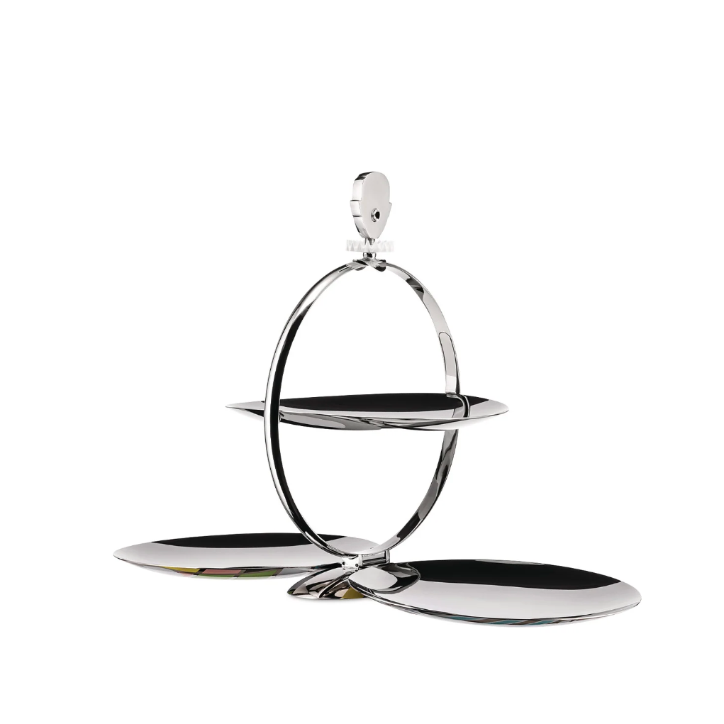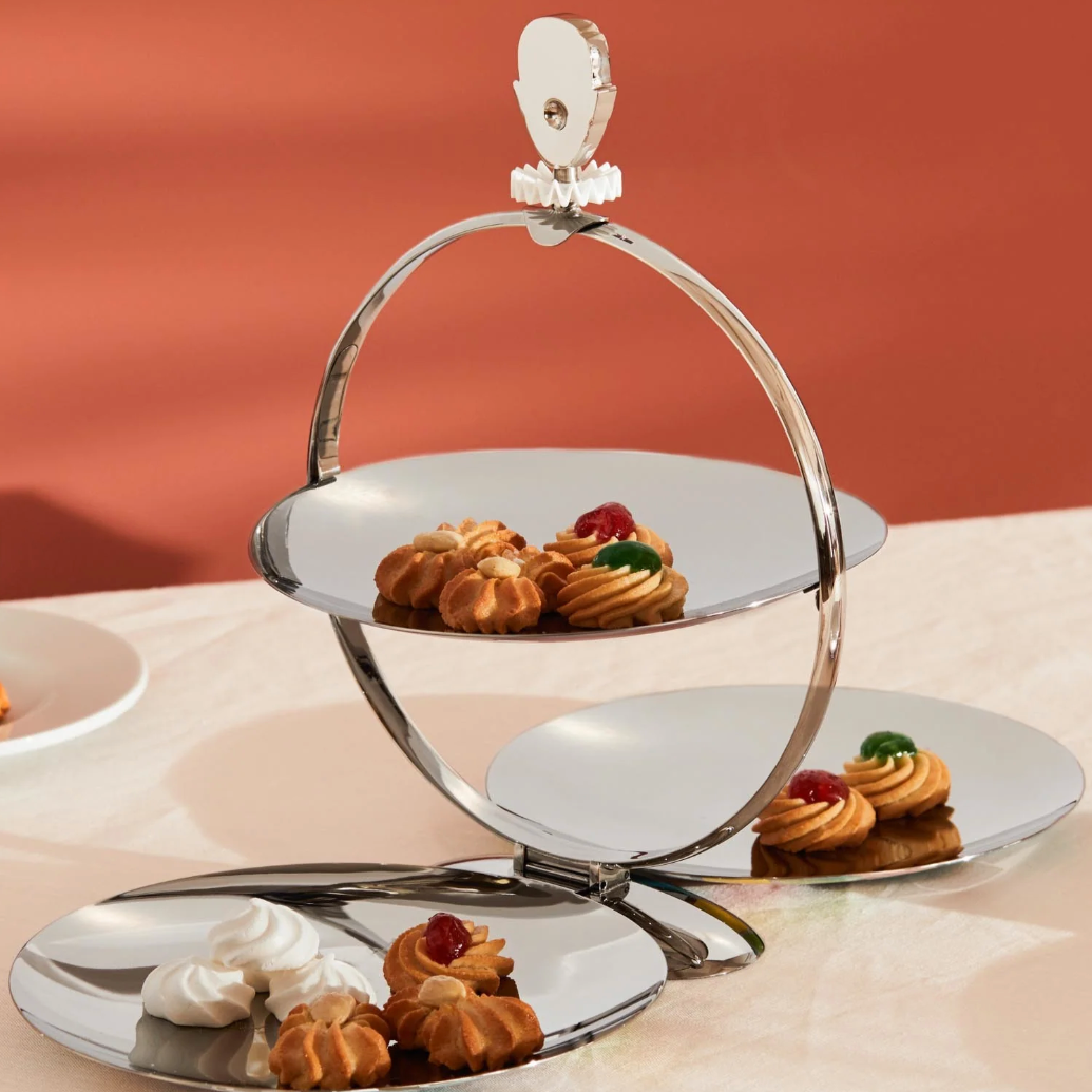 Designed by Marcel Wanders who focused his attention on the object’s decoration, creating a kind of colourful suit in which to dress the cake stand. This aspect makes the object versatile: closed, it is a table sculpture; open it becomes a multi-tier cake stand for table service. In this sense Fatman is not just a folding object, because when you close it up it doesn’t simply stop being a container, it transforms into a beautiful object to be admired.