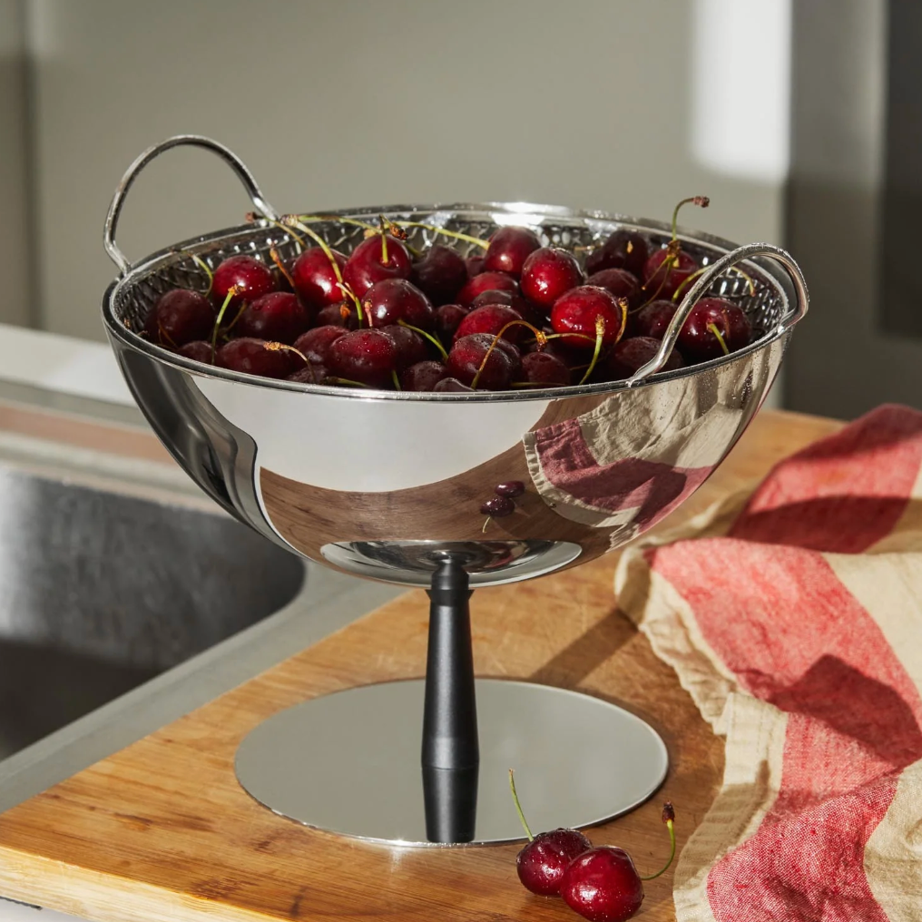 Another design masterpiece by Achille Castiglioni. With this design, an excellent and rare case of a new object made from fusing two classic household objects - fruit holder and colander - Achille Castiglioni won the “Young Creator of the Year” award from the Conseil National des Arts Culinaires de Paris in 1995. Castiglioni was 77 years of age at the time.