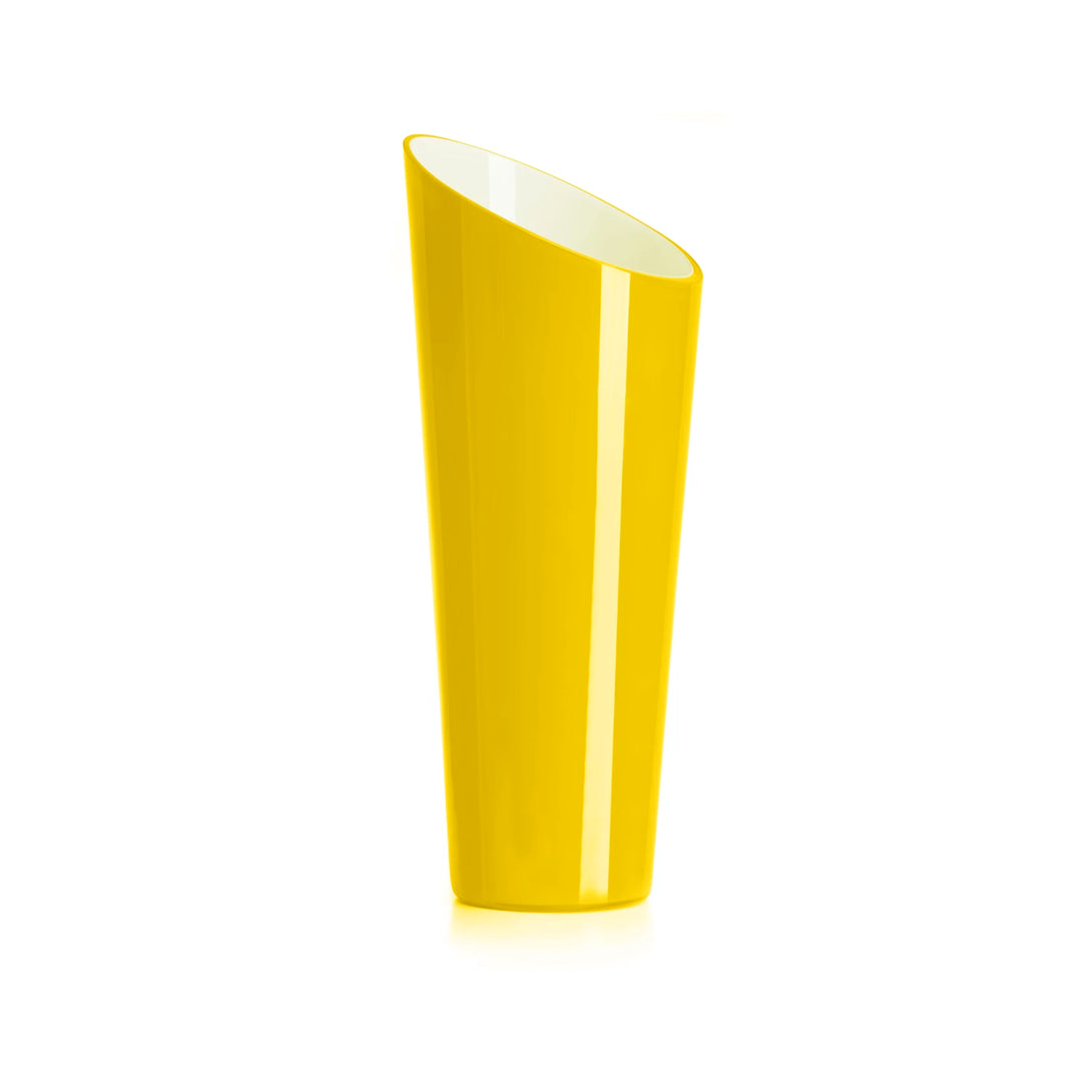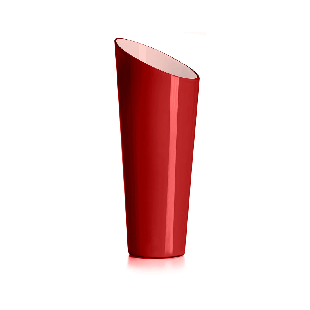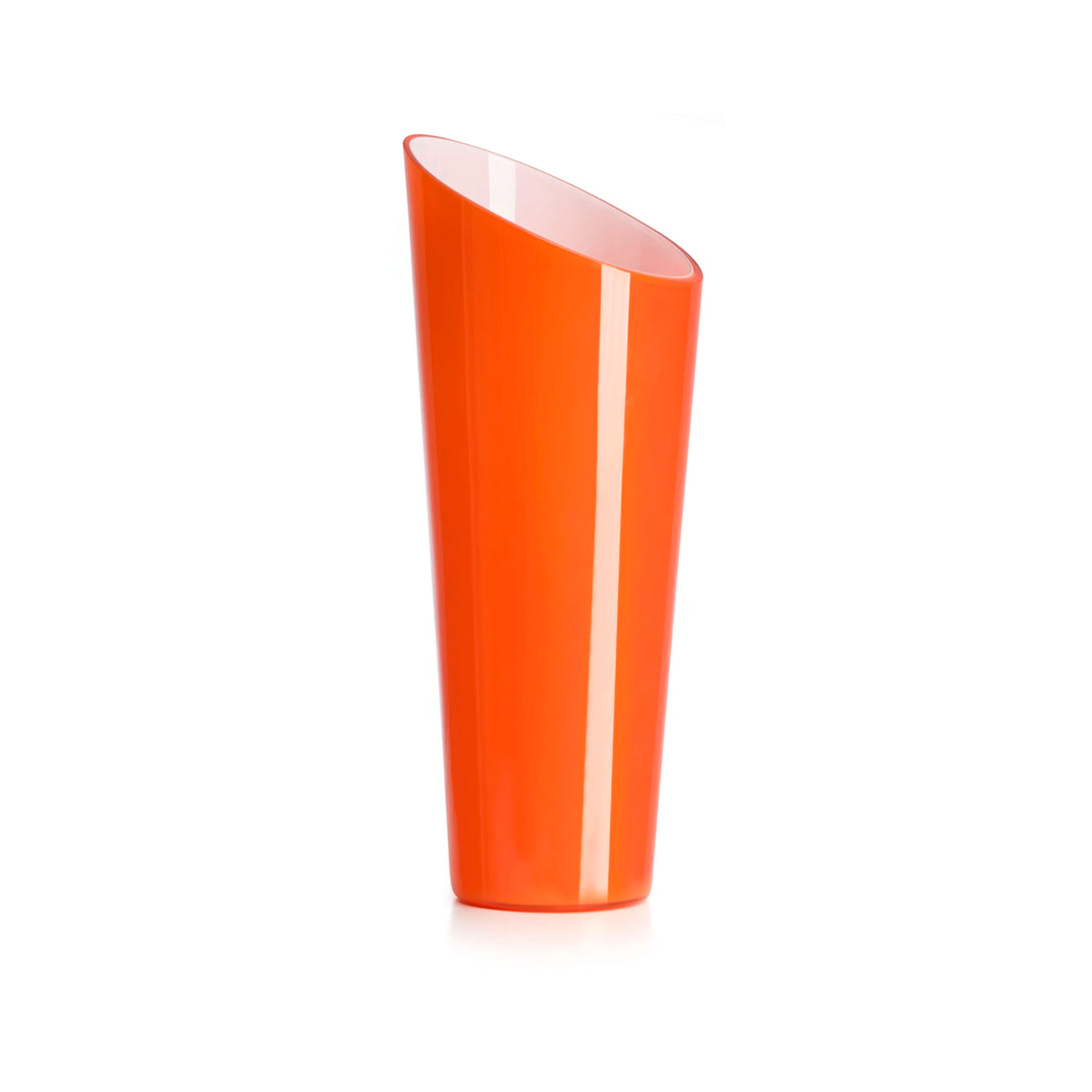 The Orizzonte collection showcases exquisite vases crafted from hand-blown glass, boasting a white interior and a stunning exterior in a range of colours including orange, yellow, red, peach, cognac, and grey. With a delicately conical shape and a sleek, hand-polished oblique mouth, these vases make for both striking home decor pieces and functional furniture accents.