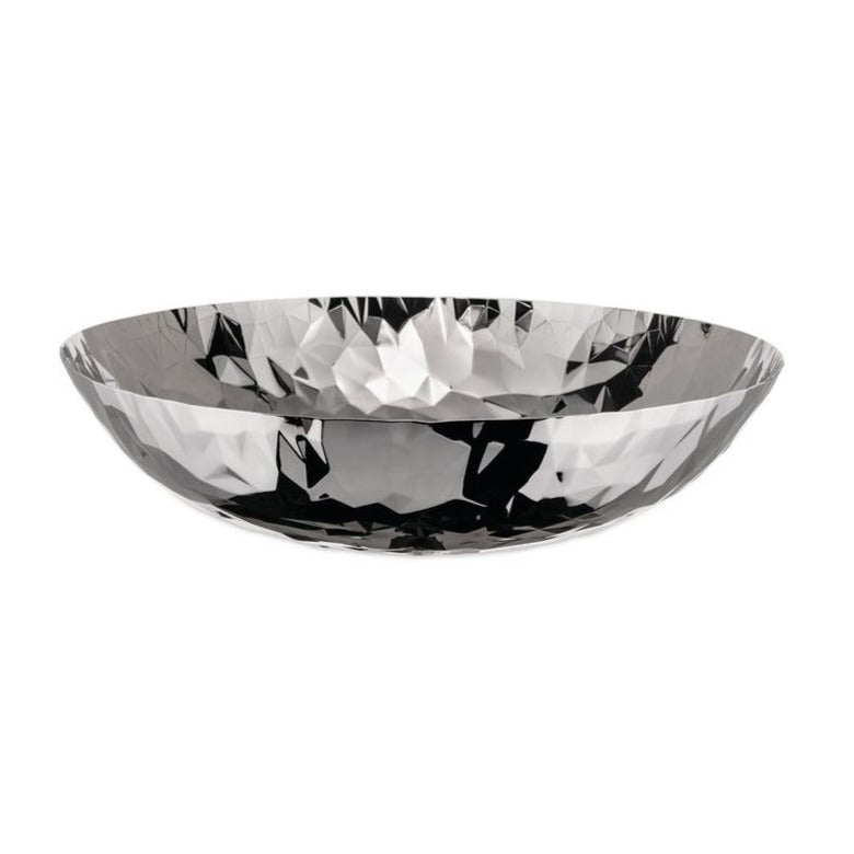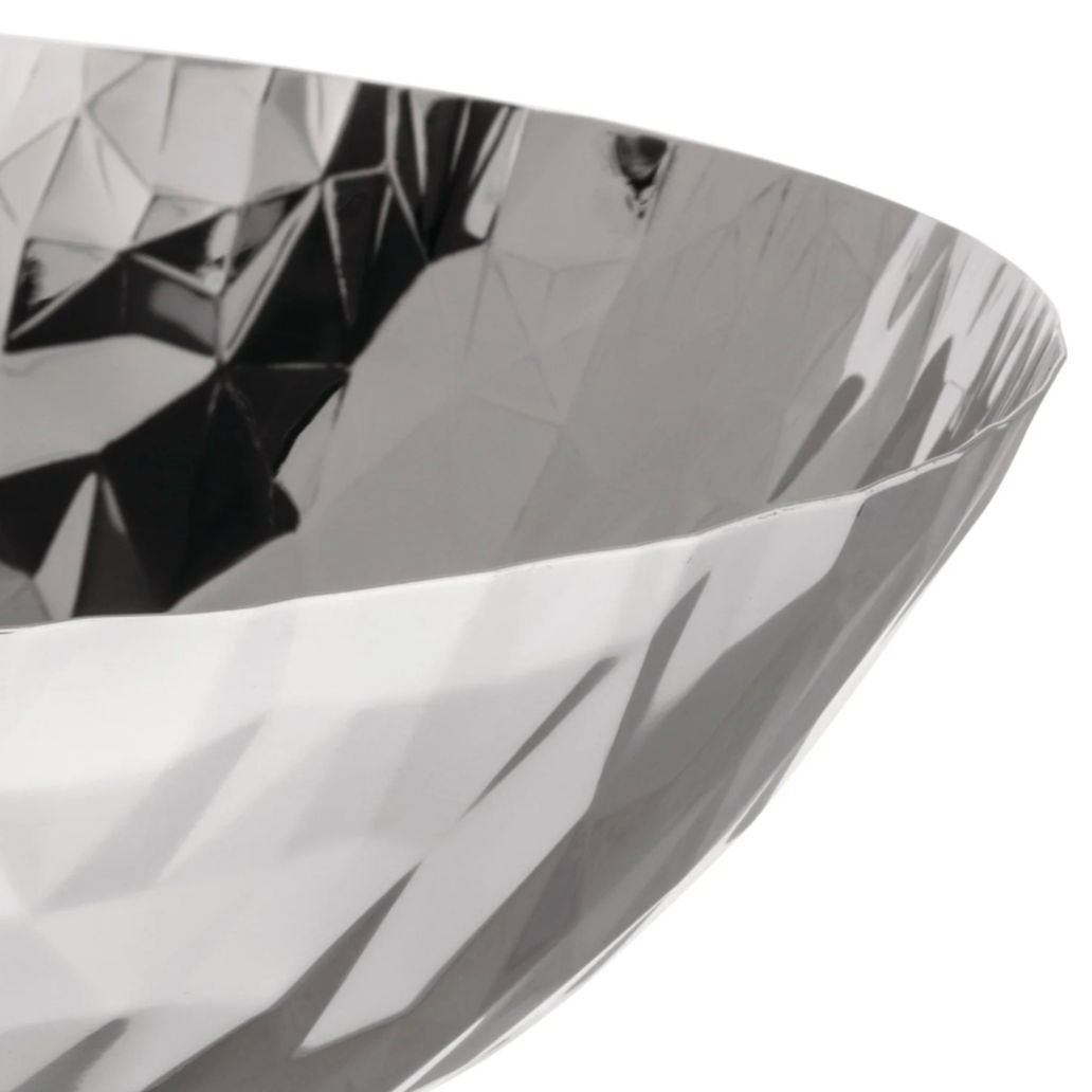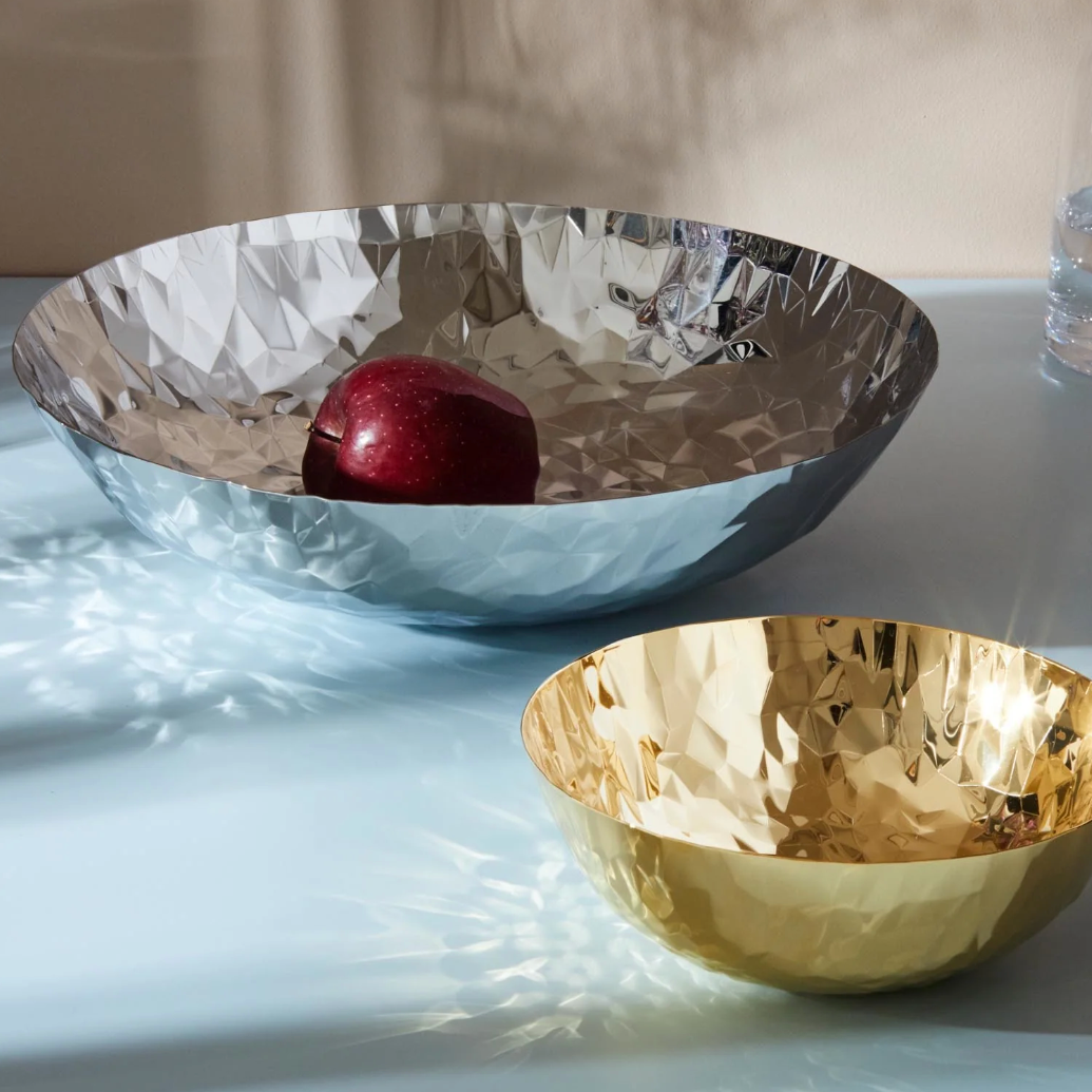 A bowl that creates unique light reflexes thanks to its special facing. The shape is open and wide - an artful way of processing metal.