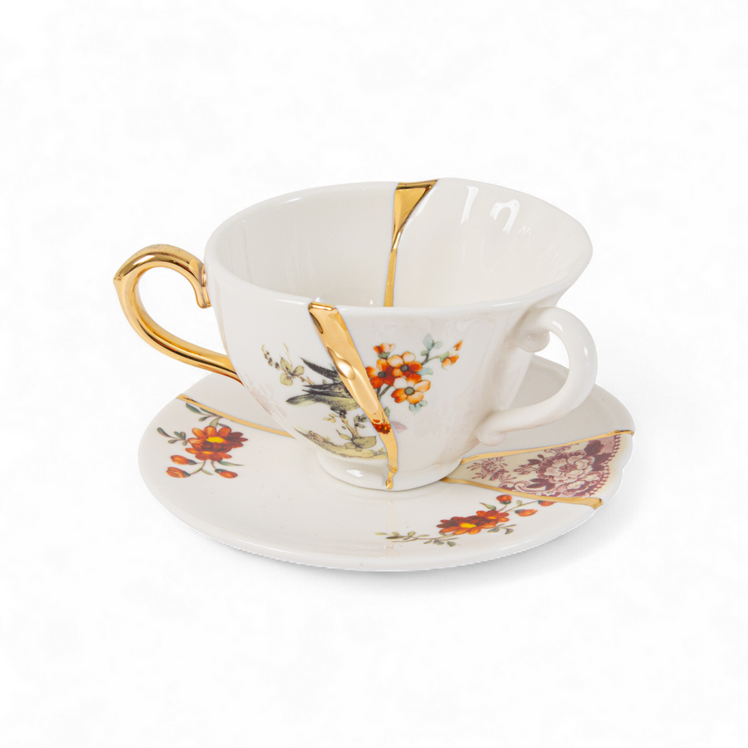 Discover the poetry of Japanese craftsmanship with this elegant tea set, where kintsugi artistry adorns every surface. Fashioned from refined porcelain and accented with delicate gold detailing, this cup and saucer pairing embodies the philosophy that beauty emerges from imperfection. An invitation to slow down and savour moments of quiet sophistication with each carefully considered sip.