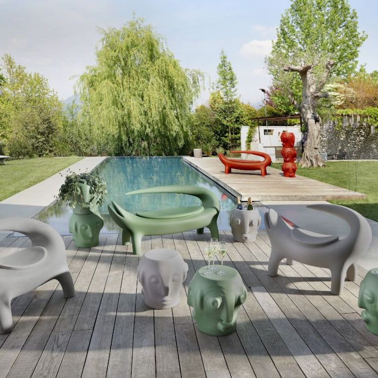 Established in 2002, Slide takes advantage of Giò Colonna Romano’s 30-year-long know-how in manufacturing plastic resins, acquired through earlier experiences in the houseware and gardening sectors. With registered headquarters and production premises just outside Milan, Slide produces polyethylene furniture with an ironic design, characterised by an exceptional use of light and ideal for setting up indoor/outdoor spaces and events. Slide is a thoroughbred Italian company, a medium businesses heralding Made in Italy products on the international market. The Slide production encompasses seats, tables, lamps, pots and complements. Items often spring from collaborations with internationally acclaimed designers including Karim Rashid, Marcel Wanders, Paola Navone, Marc Sadler, Alessandro Mendini. Thanks to rotational moulding techniques and the implementation of only one material, Slide products are 100% recyclable.