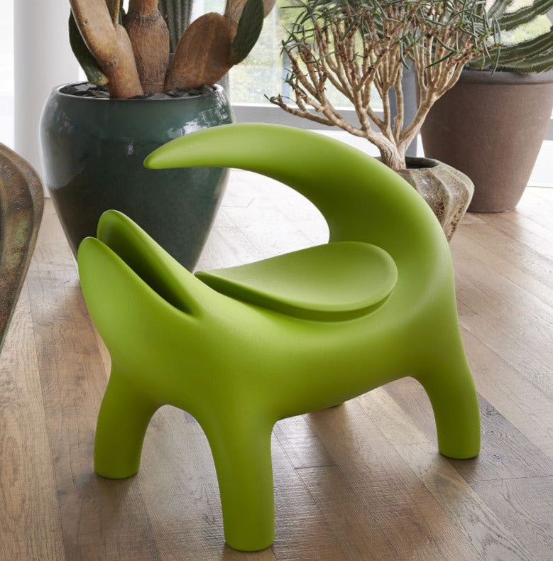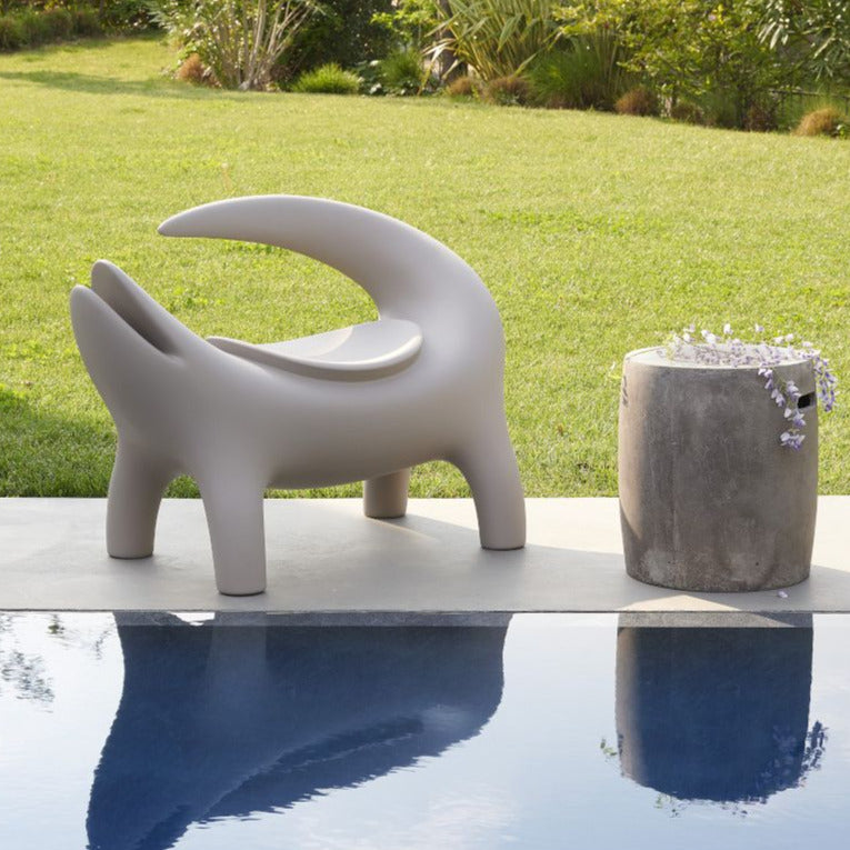 Marcantonio turns one of the most iconographic animals into an ideal companion to get relaxed in outdoor areas. Kroko is an armchair with round lines, it spreads irony in the environment. Kroko is at the same time an industrial item and a sculpture, with references to Nature and contemporary art, thanks to its hinted but also unmistakable shape. Kroko is made in a new biobased plastic derived from the sugar cane, a renewable source. SLIDE is the first company that uses this new bioplastic material in the world of design, and the shades recalls the natural colours of the Earth. Kroko is available also in sofa versions, Big Kroko, and it belongs to Afrika collection.