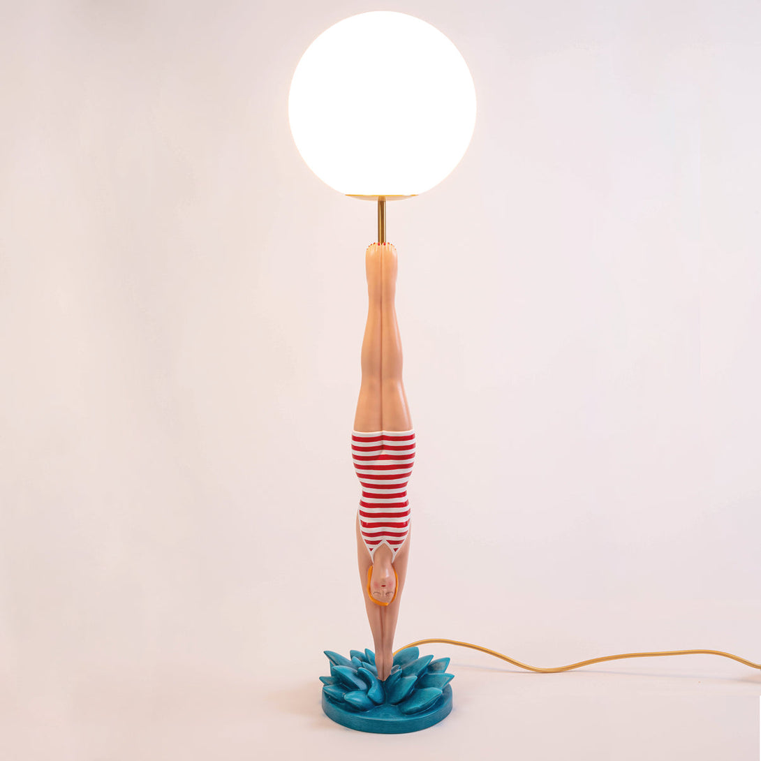 Discover an extraordinary fusion of art and illumination with the Lady Diver Table Lamp. Drawing inspiration from the iconic 1940s diver tattoo, this remarkable piece transforms a classic two-dimensional motif into a captivating three-dimensional form. Born from the designer's unique blend of professional expertise and artistic vision, this lamp transcends conventional lighting to become a striking sculptural statement that celebrates vintage aesthetics with contemporary sophistication.