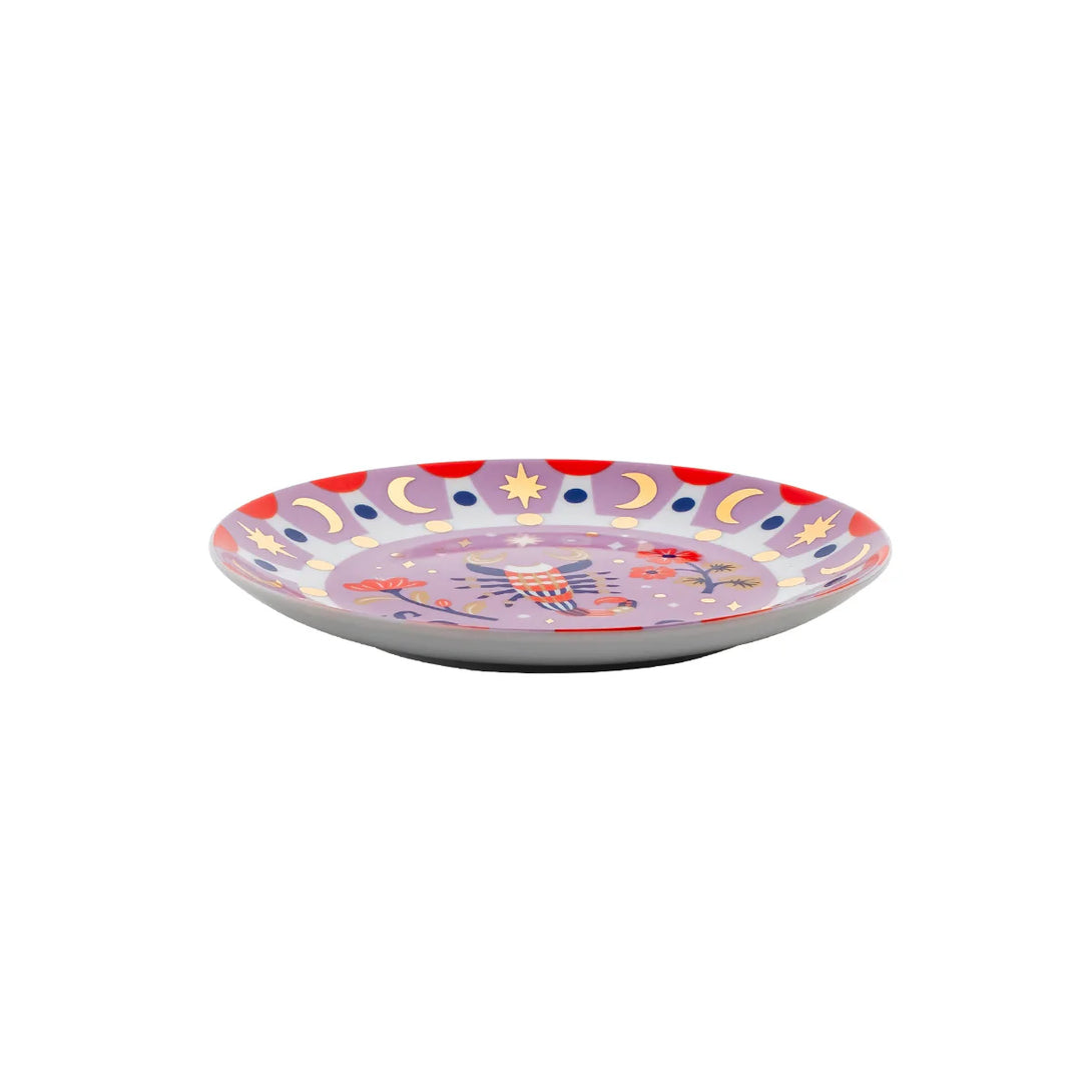 Each plate is dedicated to a zodiac sign and features a vibrant background inspired by its elemental group: Earth, Water, Fire, or Air.