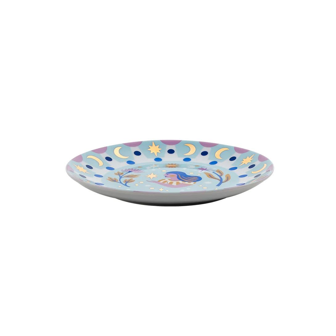 Each plate is dedicated to a zodiac sign and features a vibrant background inspired by its elemental group: Earth, Water, Fire, or Air.