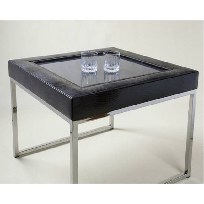 MATERIALS: Black crocodile leather, metal.