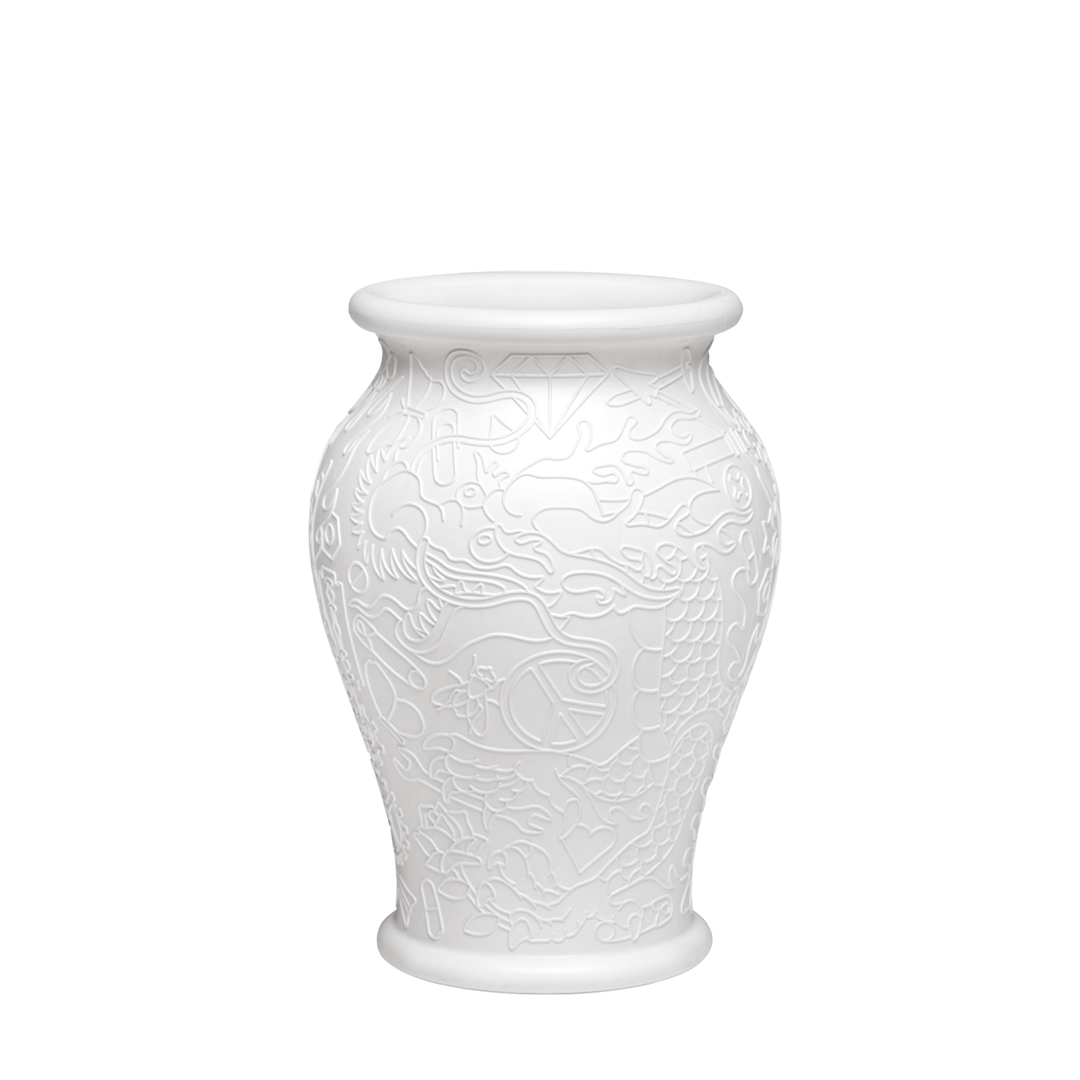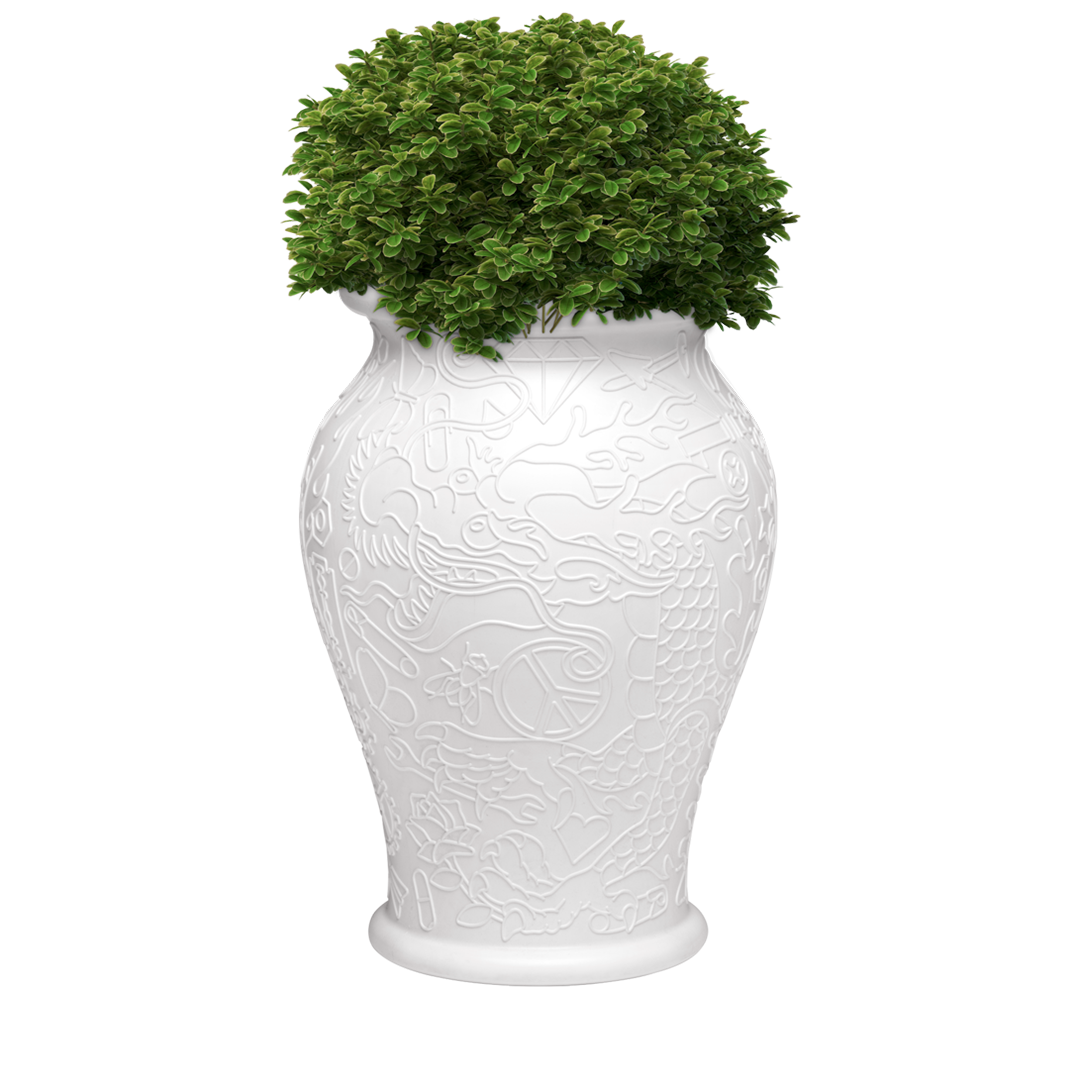 Ming by Qeeboo is a vase-shaped design object with an opening that make it a champagne cooler or a housing for plants and succulents. Honoring one of last great ancient Chinese dynasties, Ming is the result of Studio Job’s re-reading of the typical chinese porcelain vase, an ancient symbol of oriental culture, usually decorated with depictions of dragons, animals, and flowers.