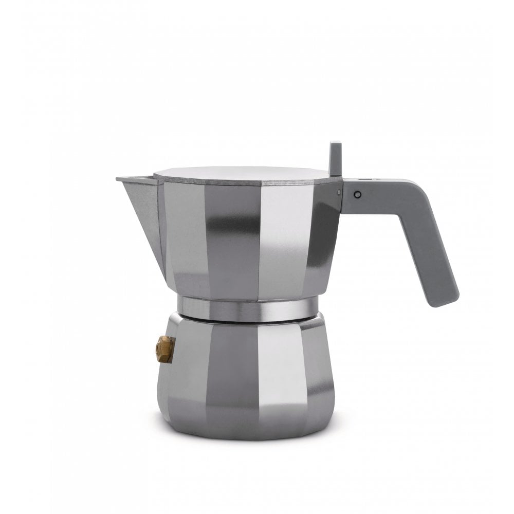 This new design by architect David Chipperfield features the iconic multifaceted shape with eleven sides and introduces a series of details that make the Moka design new and even more functional, such as the flat lid on which to place the cups to be heated - allowing optimum enjoyment of the aroma and flavour of the drink - and the position of the knob which allows you to easily raise the lid, using only one hand.