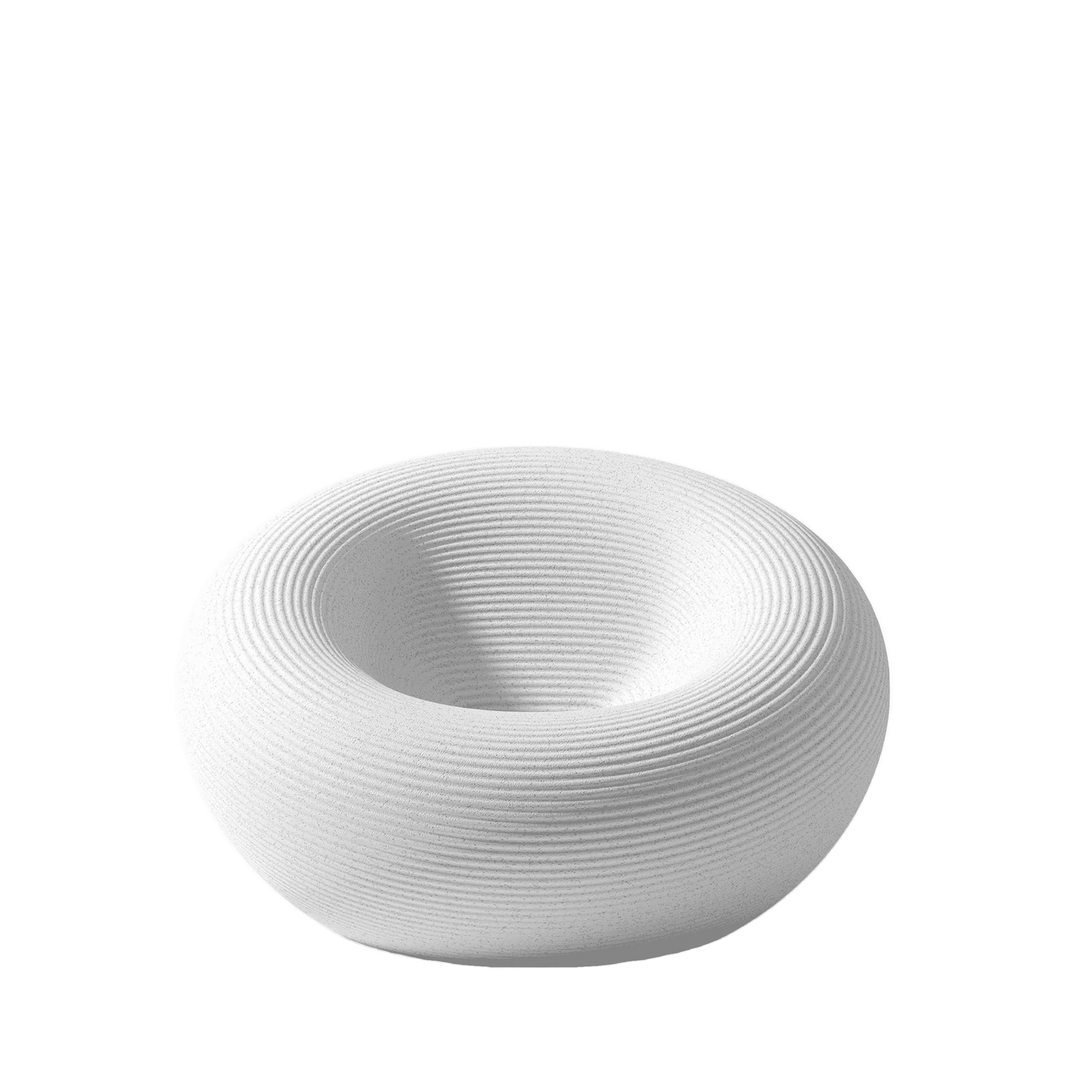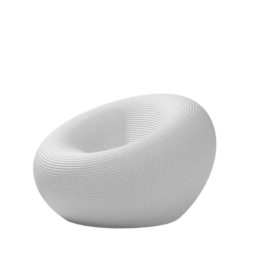 The Nami Armchair is obtained by the rotation of a section on the diagonal axis, it has a perfectly circular shape where the moldings that characterize its surface unravel from the center to its edges with a sequence of concentric rings. In the center of the armchair there is the channel for water reflux. Available in six colours, three of these have a uniform colour, the other three are obtained from recycling and mixing materials with 2-3 different color tones.