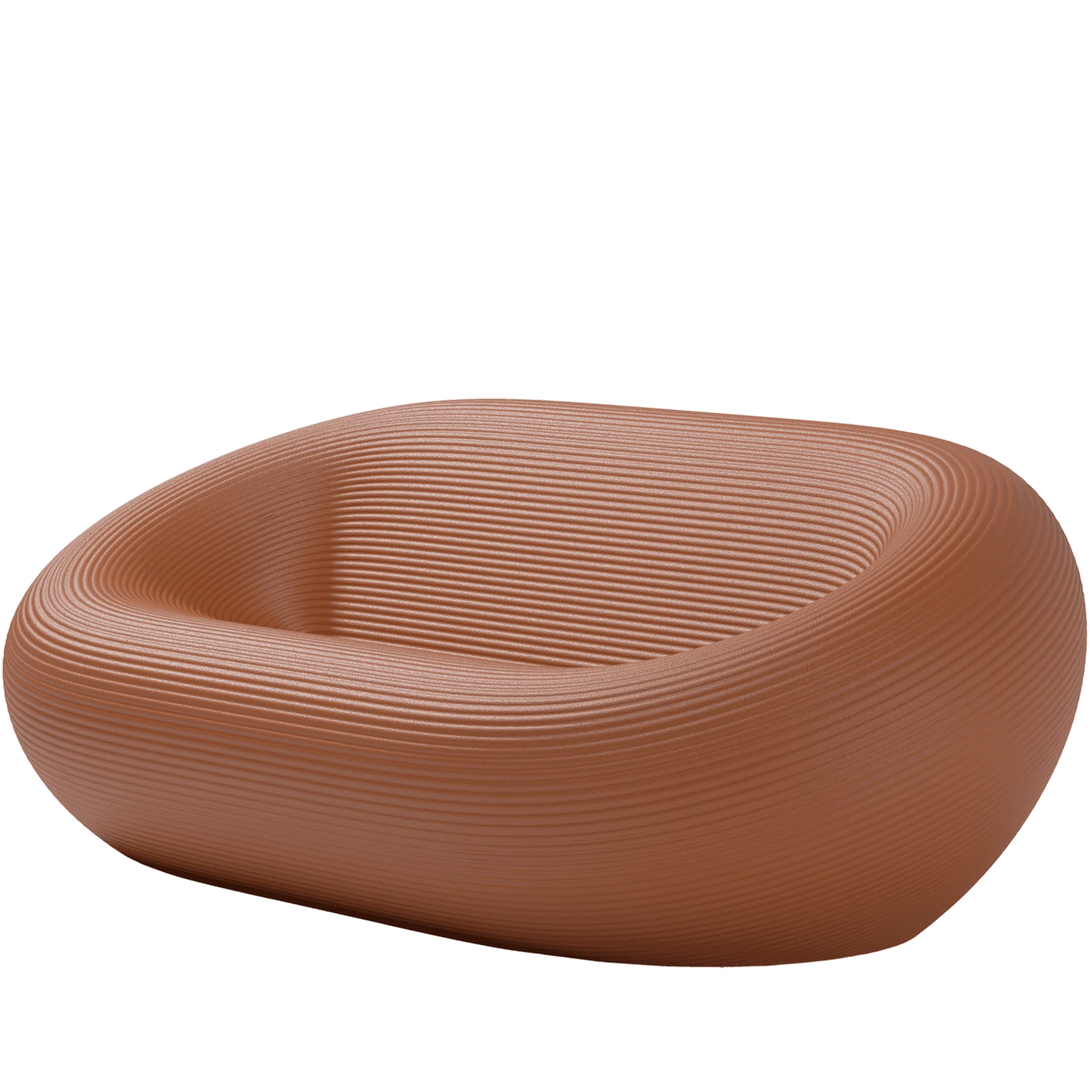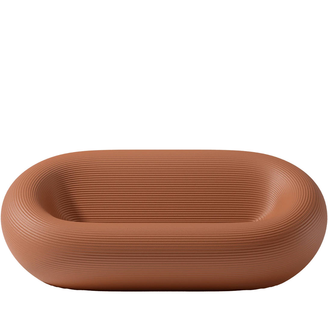 The Nami Sofa is characterized by a linear shape in the center that becomes circular at the two ends. In the middle part of the sofa there are two channels for water reflux. Allows seating of 2-3 people. Available in six colours, three of these have a uniform colour, the other three are obtained from recycling and mixing materials with 2-3 different color tones.