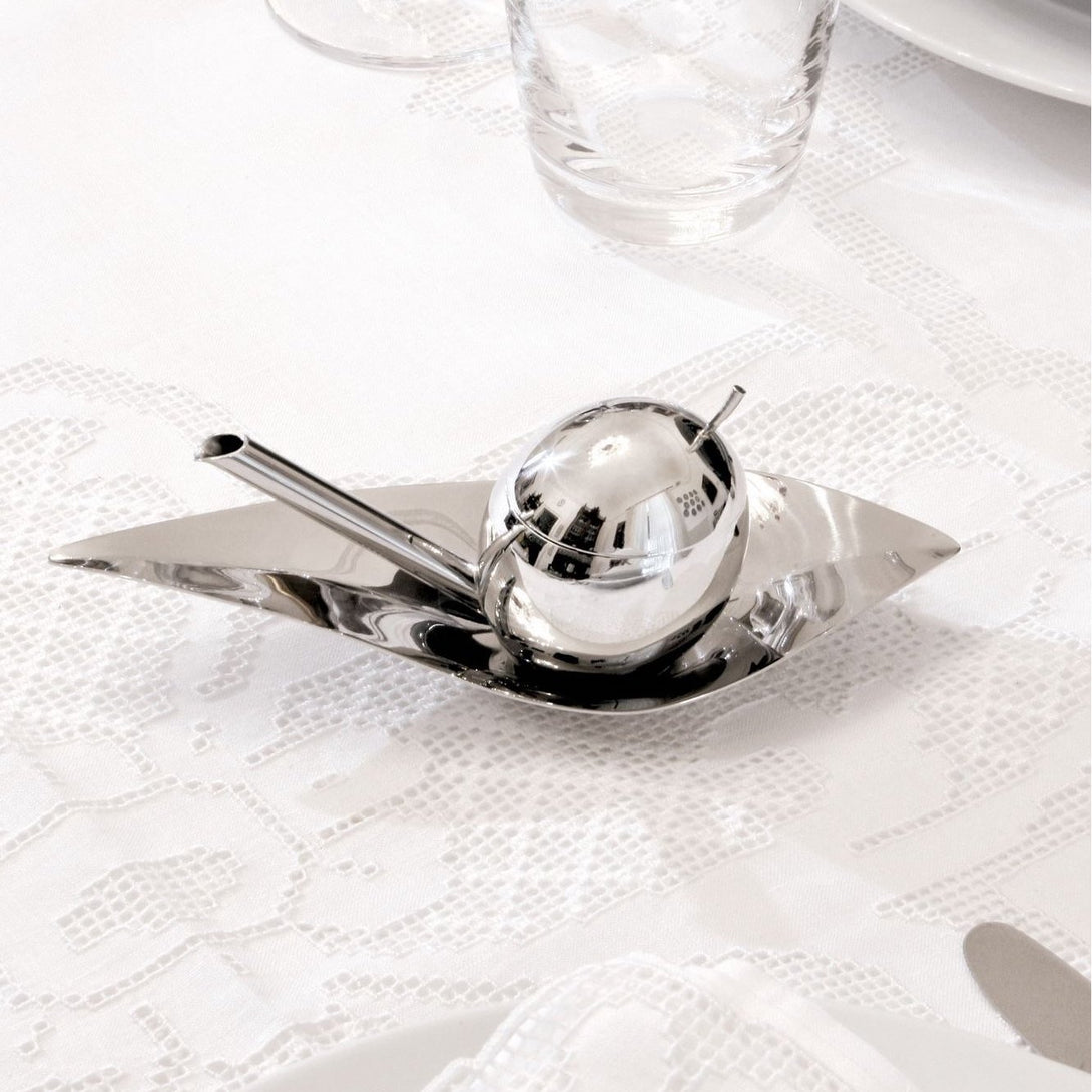 Lorenzo Piccione from Pianogrillo is a Sicilian olive oil producer. Like many before him, Piccione has observed the growth in interest in quality oil, but he alone noticed that there was no utensil that allowed knowledgeable tasting of this wonderful substance. And so he designed a completely new type of object for the Encyclopedia Alessi: the personal oil taster.