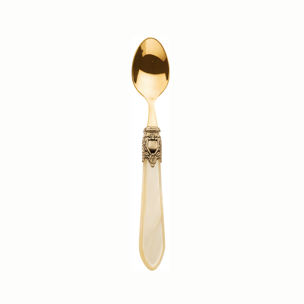 Observe the most important rules of etiquette by bringing Oxford Gold coloured cutlery to the table. To ensure an elegant table with a regal spirit, each piece is made of gold PVD-coated 18/10 stainless steel, with an acrylic handle embellished with a sophisticated antique gold-finished ring that resembles a noble coat of arms.