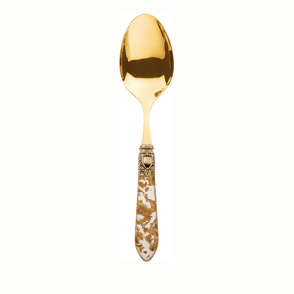 Observe the most important rules of etiquette by bringing Oxford Gold coloured cutlery to the table. To ensure an elegant table with a regal spirit, each piece is made of gold PVD-coated 18/10 stainless steel, with an acrylic handle embellished with a sophisticated antique gold-finished ring that resembles a noble coat of arms.