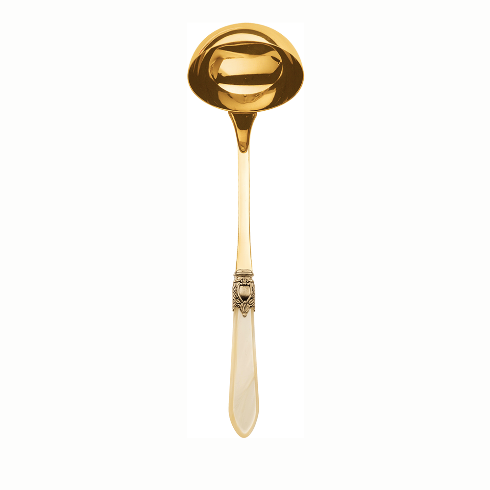 Observe the most important rules of etiquette by bringing Oxford Gold coloured cutlery to the table. To ensure an elegant table with a regal spirit, each piece is made of gold PVD-coated 18/10 stainless steel, with an acrylic handle embellished with a sophisticated antique gold-finished ring that resembles a noble coat of arms.
