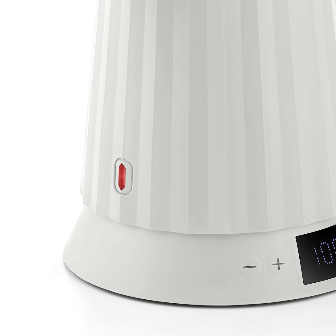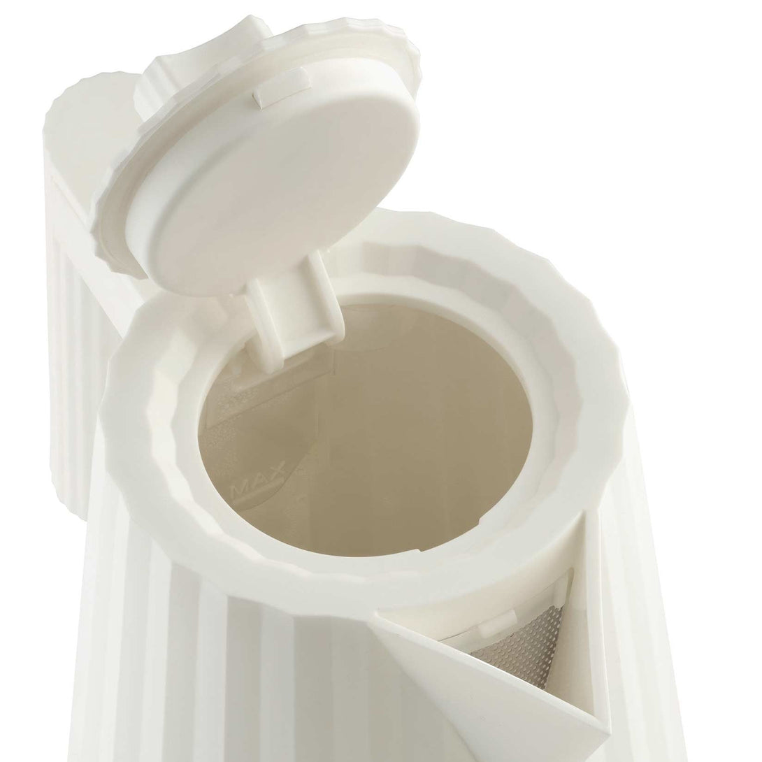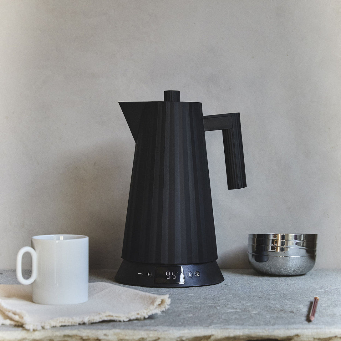 Plissé kettle combines functional aspects with a sculptural and fascinating design: like a fabric transformed into a three-dimensional object by a tight fold, this kettle is reminiscent of a haute couture dress.