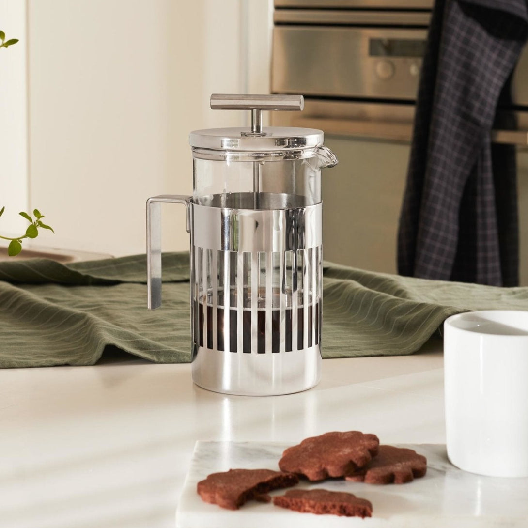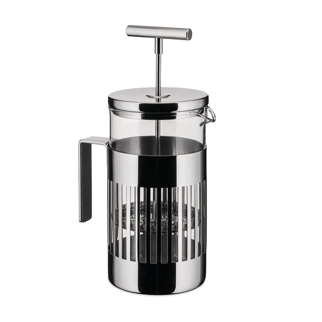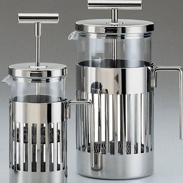 Be it coffee or tea lovers, 9094 press filter designed by Aldo Rossi makes everyone happy with a product of great design and brewing capabilities. This French press shows the designer's love for geometrical shapes and simple yet intriguing patterns. 9094 will look great both on the breakfast table or to serve coffee at the end of a dinner party.
