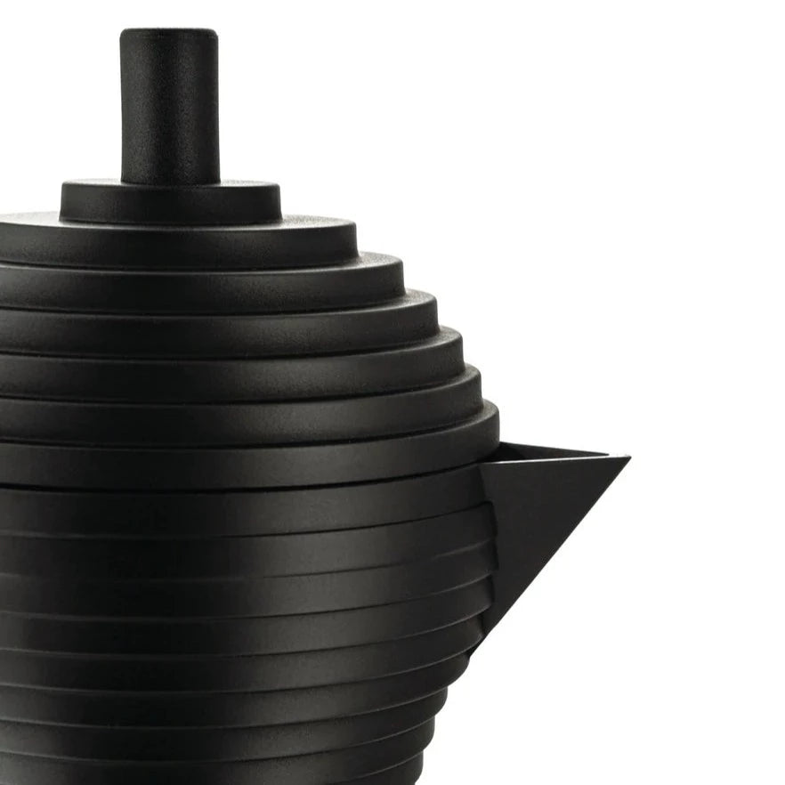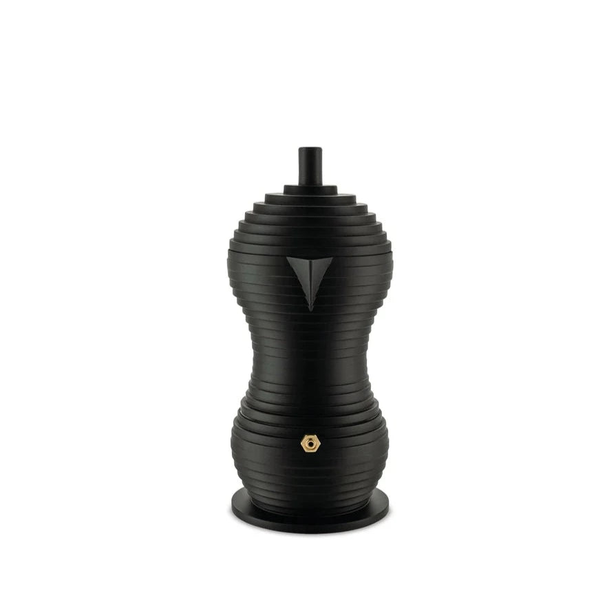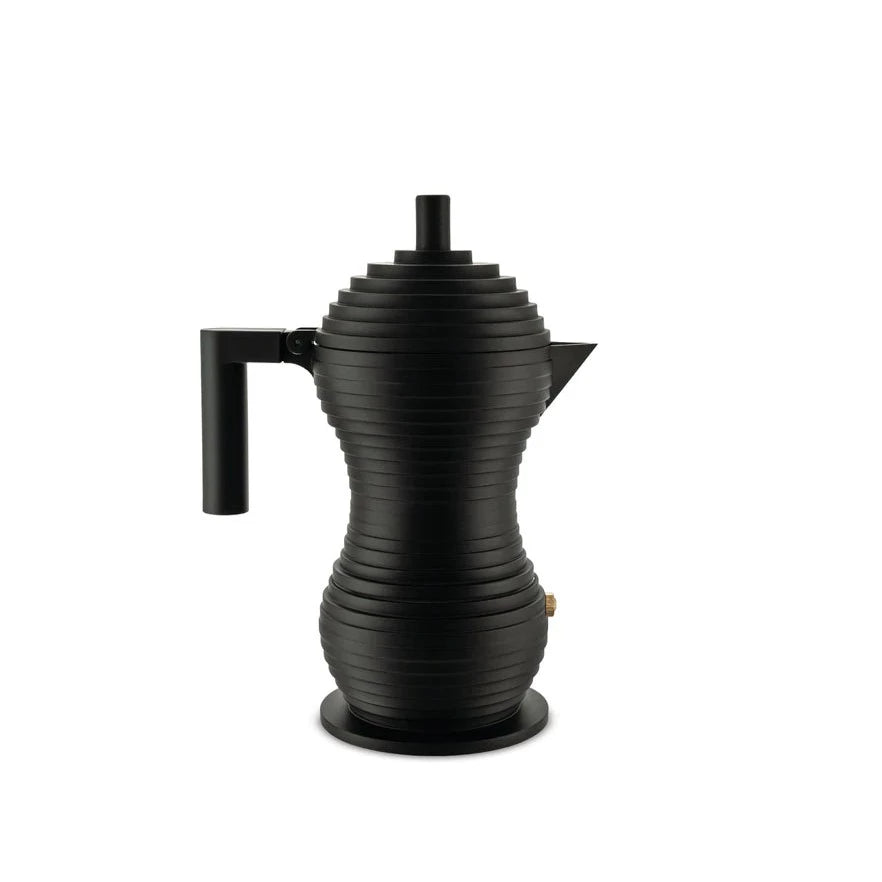 Pulcina by Alessi, designed by Michele de Lucchi, is the product of intense research into the optimisation of the shape of the coffee pot in order to improve and enhance the organoleptic properties of coffee. Thanks to the internal shape of its special heater, Pulcina automatically stops filtering the coffee at the right moment. This interruption helps to eliminate the eruption phase, the final filtering stage that generates a burnt and bitter aftertaste, ensuring that only the finest qualities of the coffee are preserved and enhancing its full-bodied and rounded aroma.