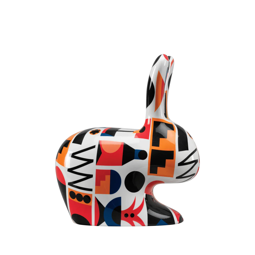 Qeeboo launches a new version of its most iconic products decorated by artists, designers or stylists. The first ones of this new series are the ones decorated with patterns specifically created by Marco Oggian with its playful character, joyful and colourful mood. Discover Rabbit M Edition Oggian White.