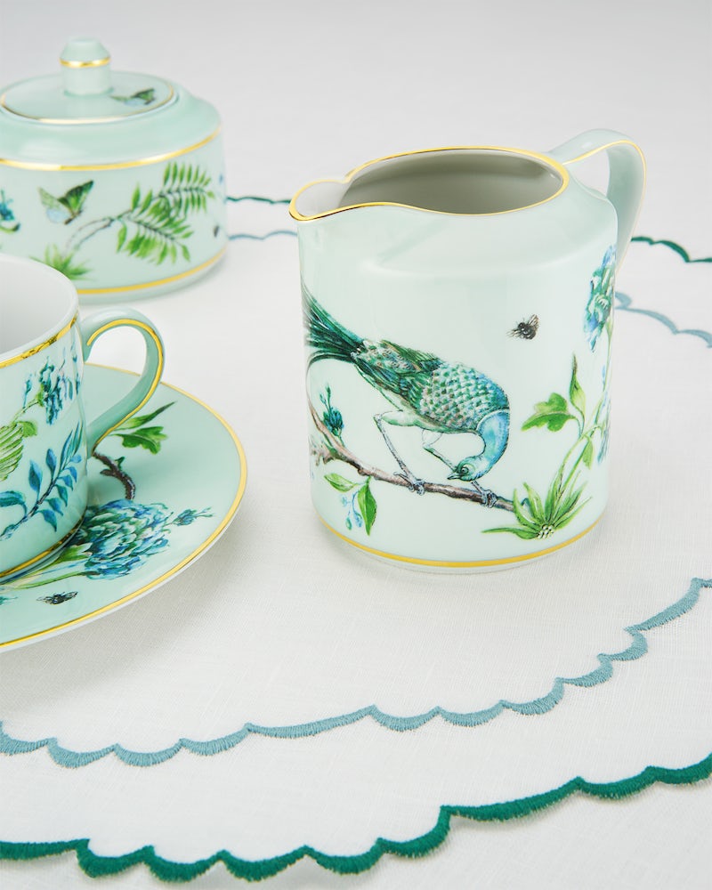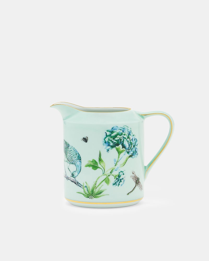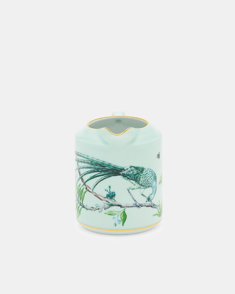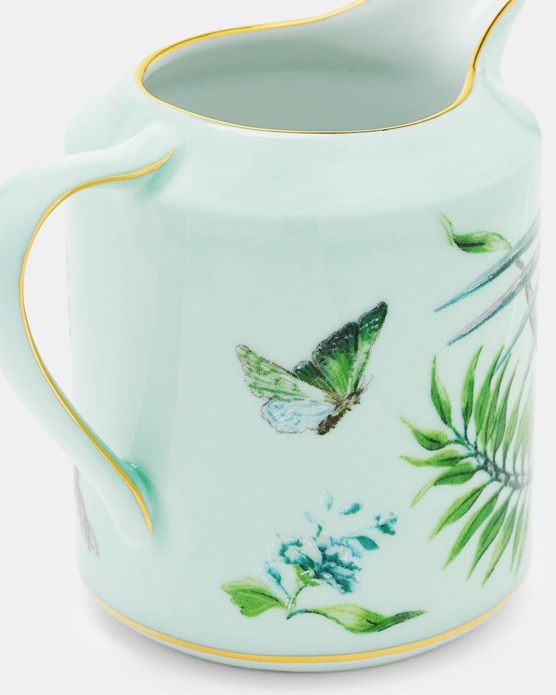 Ad a touch of sophistication to your tea and coffee ritual with Aquazzura Casa's Secret Garden Creamer. Crafted from pure porcelain, the creamer is designed in a kelly green floral print and is finished with fine gold detailing, Pair with other items from the collection for a cohesive tablescape.