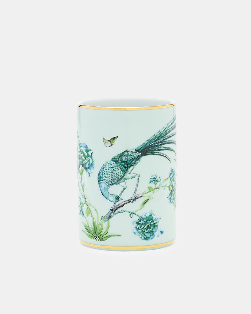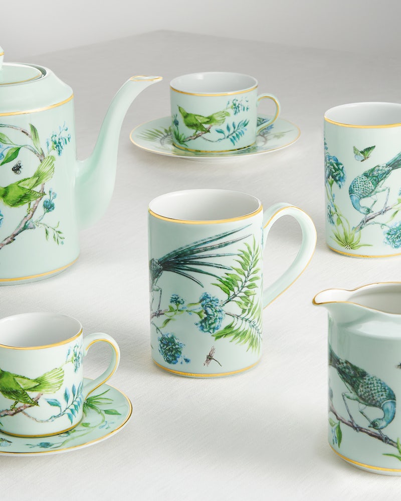 Aquazzura Casa's Secret Garden Mug is a chic and stylish way to enjoy your favorite steaming beverage. Expertly crafted from porcelain in a kelly green garden-motif the mug is finished with golden detailing . Match with other exquisite pieces from the range.