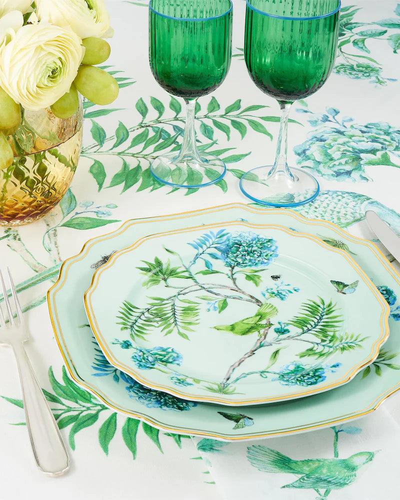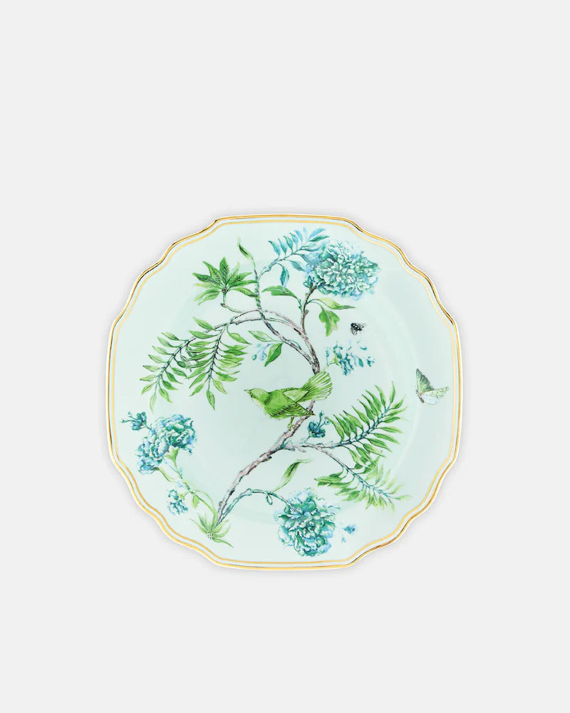 Aquazzura Casa's Secret Garden Soup Plate is perfect for serving up your favorite soups and stews. Crafted from pure porcelain, the rim is designed with a kelly green floral pattern and finished with golden detailing. Pair with other sophisticated pieces from the collection.