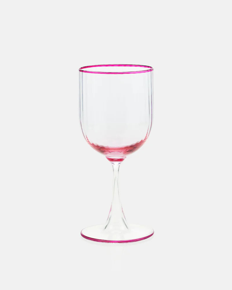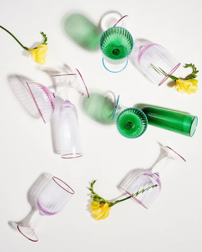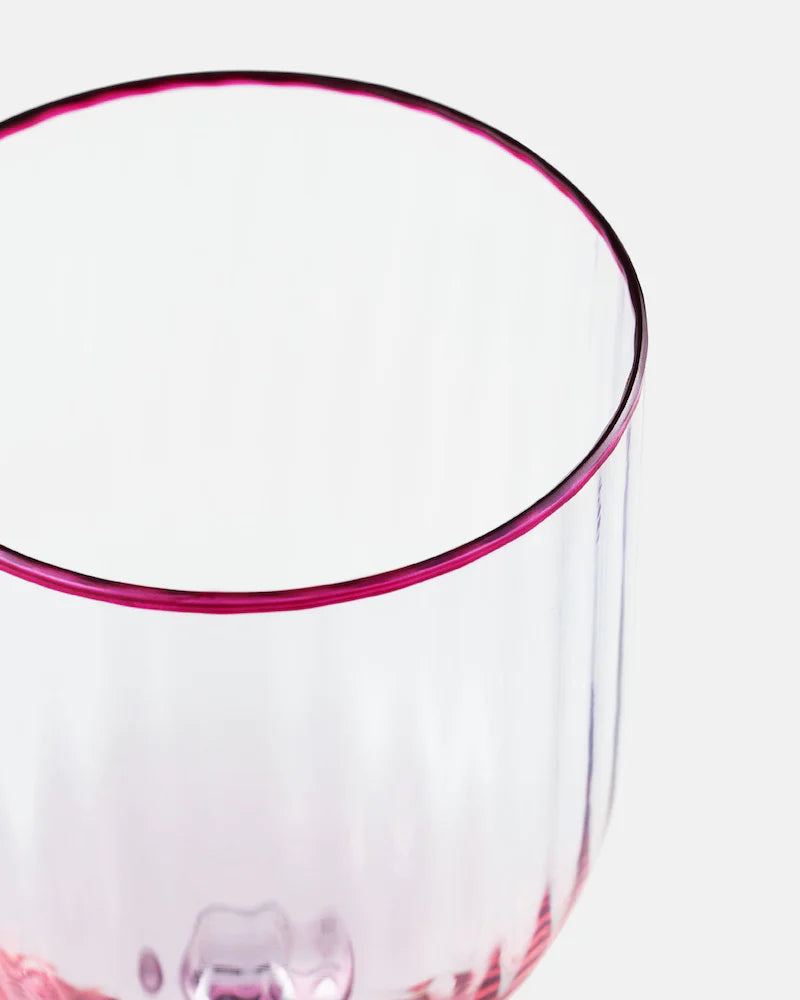 Aquazzura Casa's Striped Water Glass will make a stunning addition to any tabletop. Italian-crafted from handblown Murano glass in amethyst rose, the fluted stem is finished with a golden rim. Pair with our other striking glassware to liven up your table setting