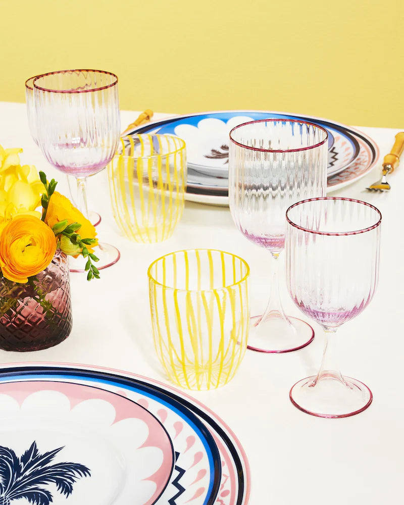 Our Striped White Wine Glass makes an elegant and timeless statement for any dining occasion. Hand-crafted from Murano glass in emerald and turquoise, the fluted stem is finished with a golden rim. Pair with our other striking glassware to liven up your table setting.