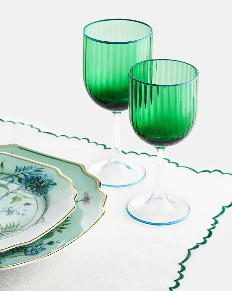 Moving from Edgardo Osorio's penchant for tablescaping, Aquazzura's signature motifs, tactile embroideries, and vibrant prints crowd the homeware collection while evoking the stylistic atmospheres from Japan, China, and India.