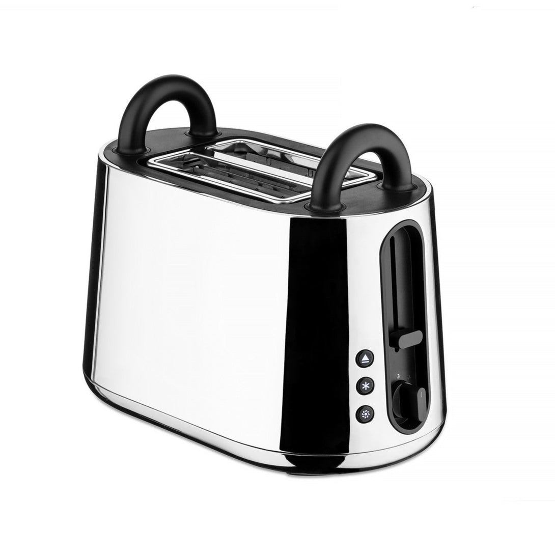 In Japanese, “toru” means “through” and with this toaster a black element, that appears to pass through the body of the object, becomes a pair of handles that resolve a functional necessity using inventive shapes.